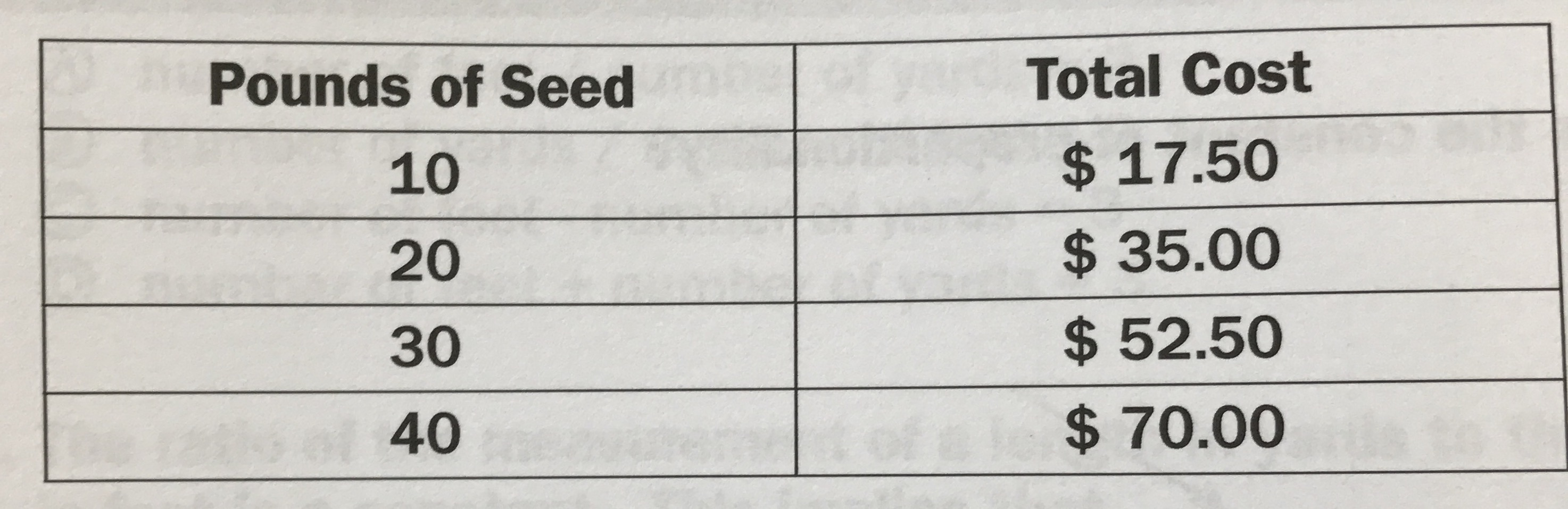 What is the unit rate for a pound of seed?