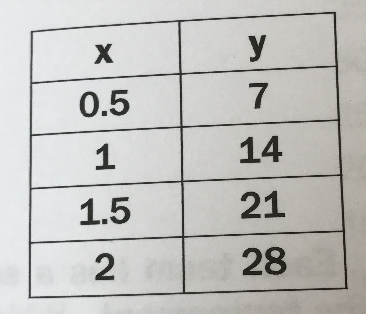 Use the data in the table to give an equation to represent the proportional relationship.