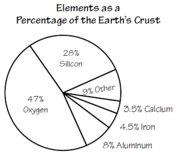 Look at the pie chart above. In a 400 pound sample of the Earth's crust different amounts of each element above was found. Based on the data in the graph, how many more pounds of Oxygen was found than Silicon?