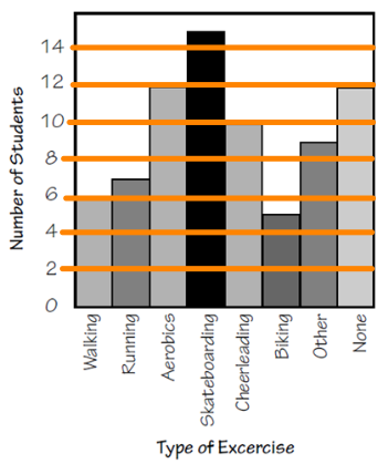 Look at the bar graph above. Which two exercises together were as popular as skateboarding?