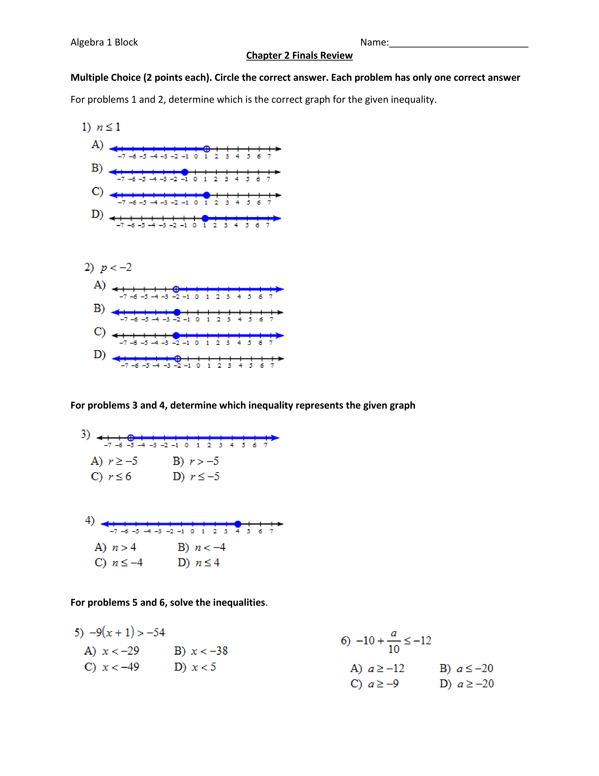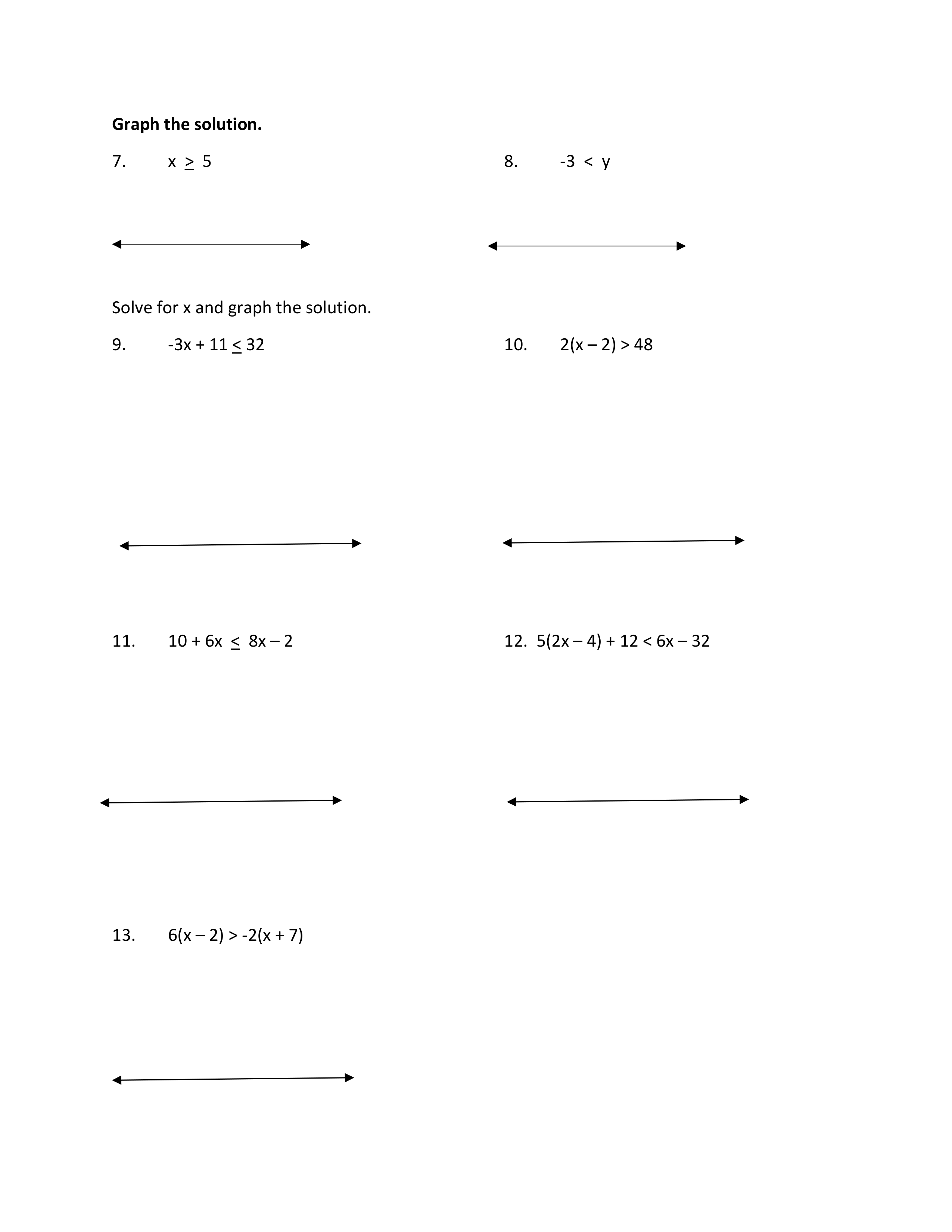 Solution (graph on the worksheet).Use <, >, <=, or >=