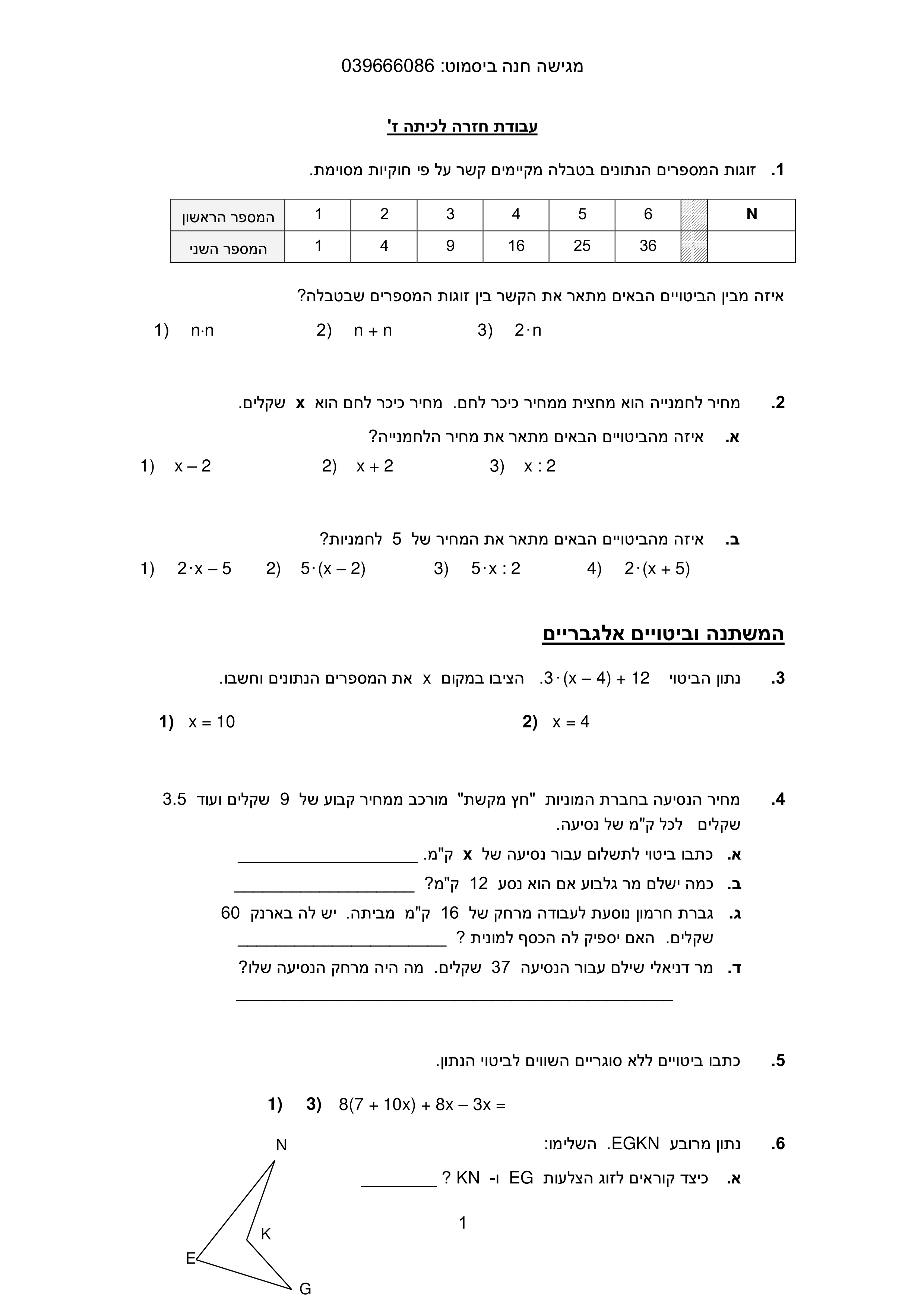 כתוב ביטוי לתשלום עבור נסיעה של X ק"מ