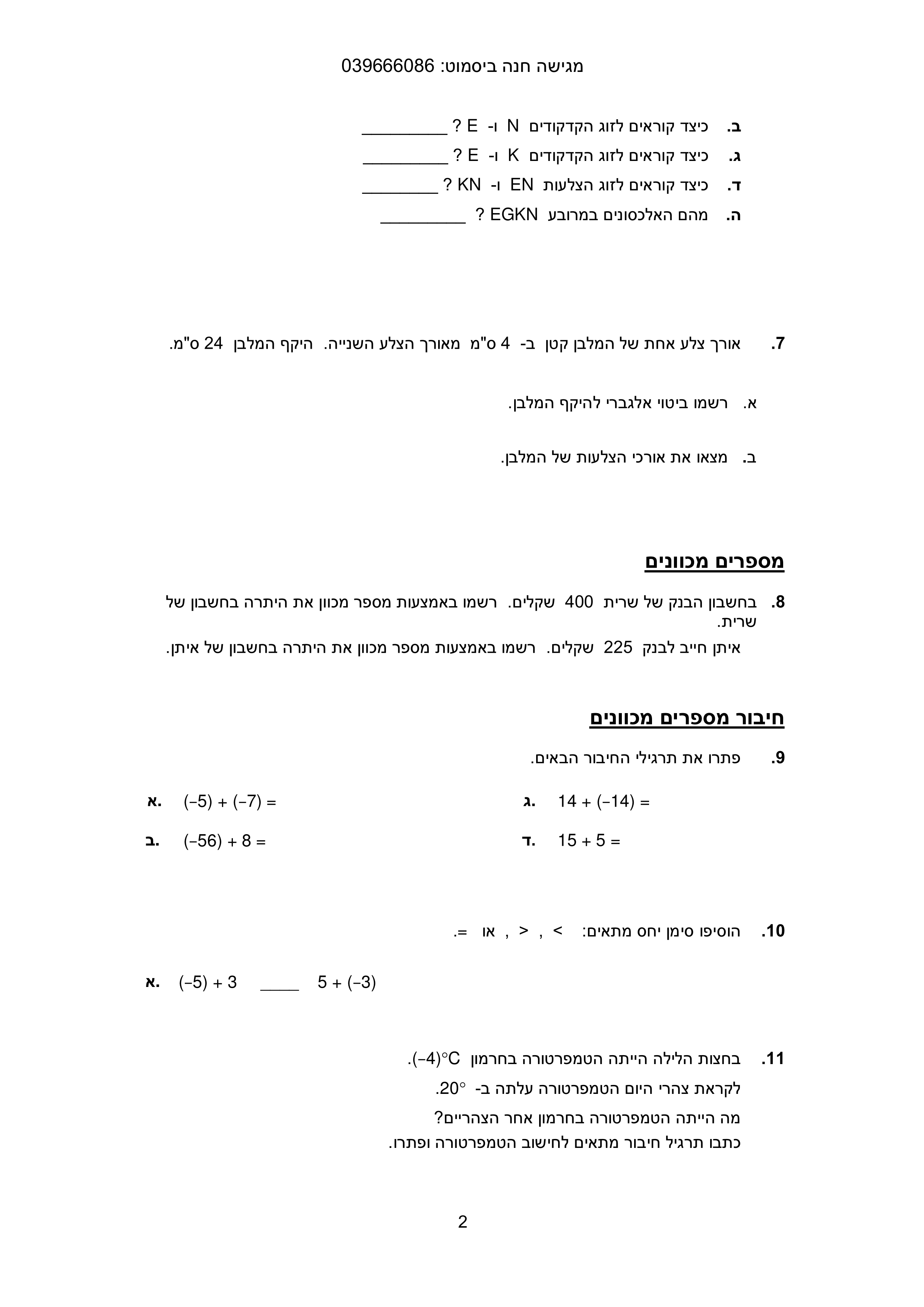 כתוב תרגיל חיבור שמתאים לחישוב טמפרטורה ופתרו