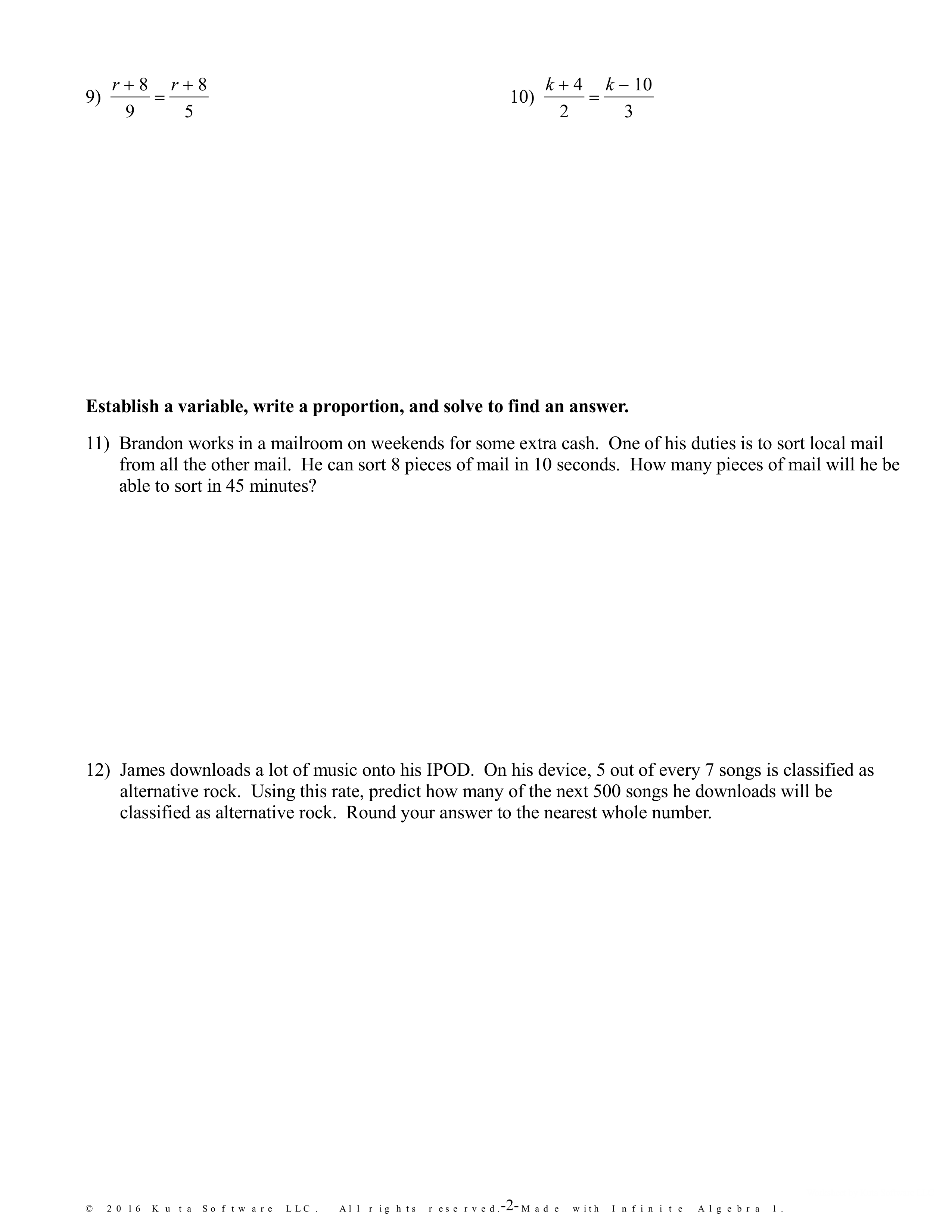 Write a proportion to represent the word problem for #12. Use x as your variable