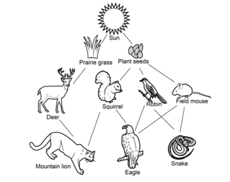 The diagram above shows the transfer of energy between members of an ecosystem. The information in this diagram supports which of the following ideas?