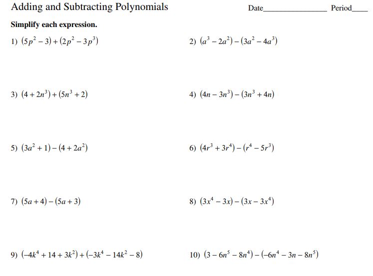 Polynomial introducation, addition and subtraction