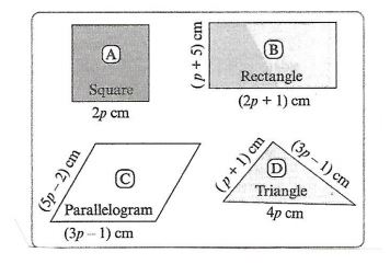 By looking at the above image, which value of p gives shape D a perimeter of 24cm?