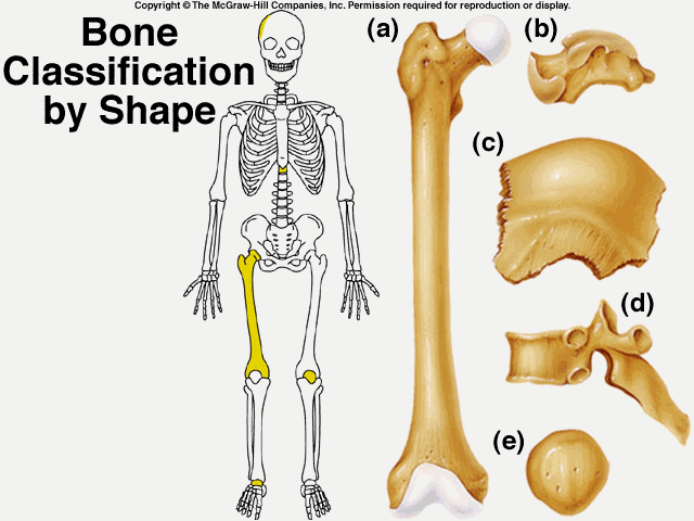 On the picture of bone classification, the bone labeled (e) is a short bone.