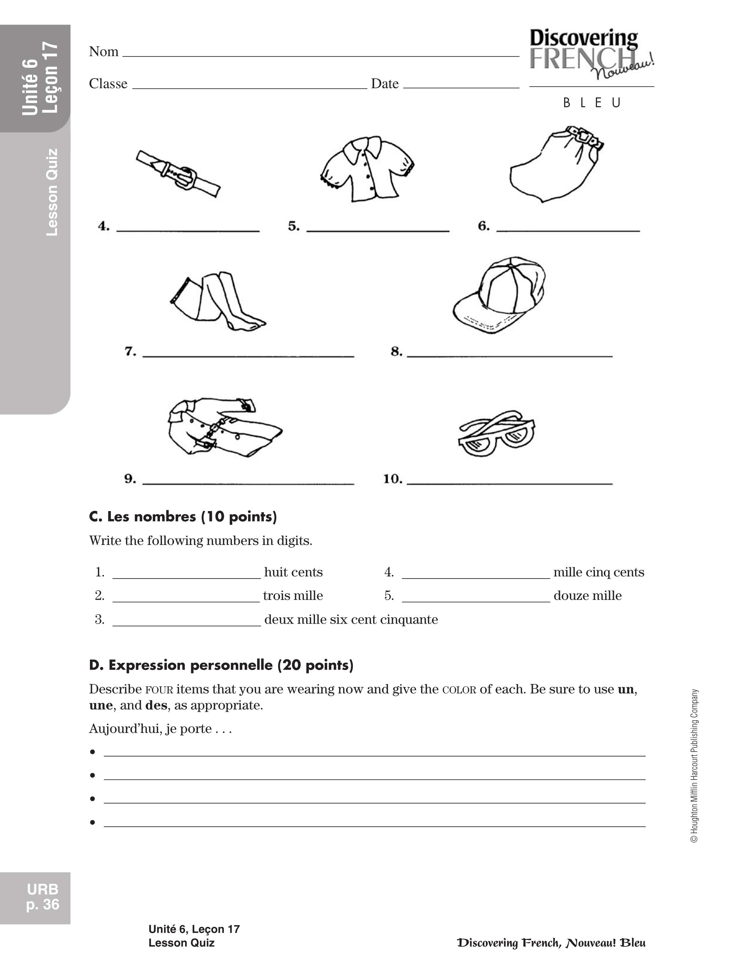 Bleu lesson 17 quiz