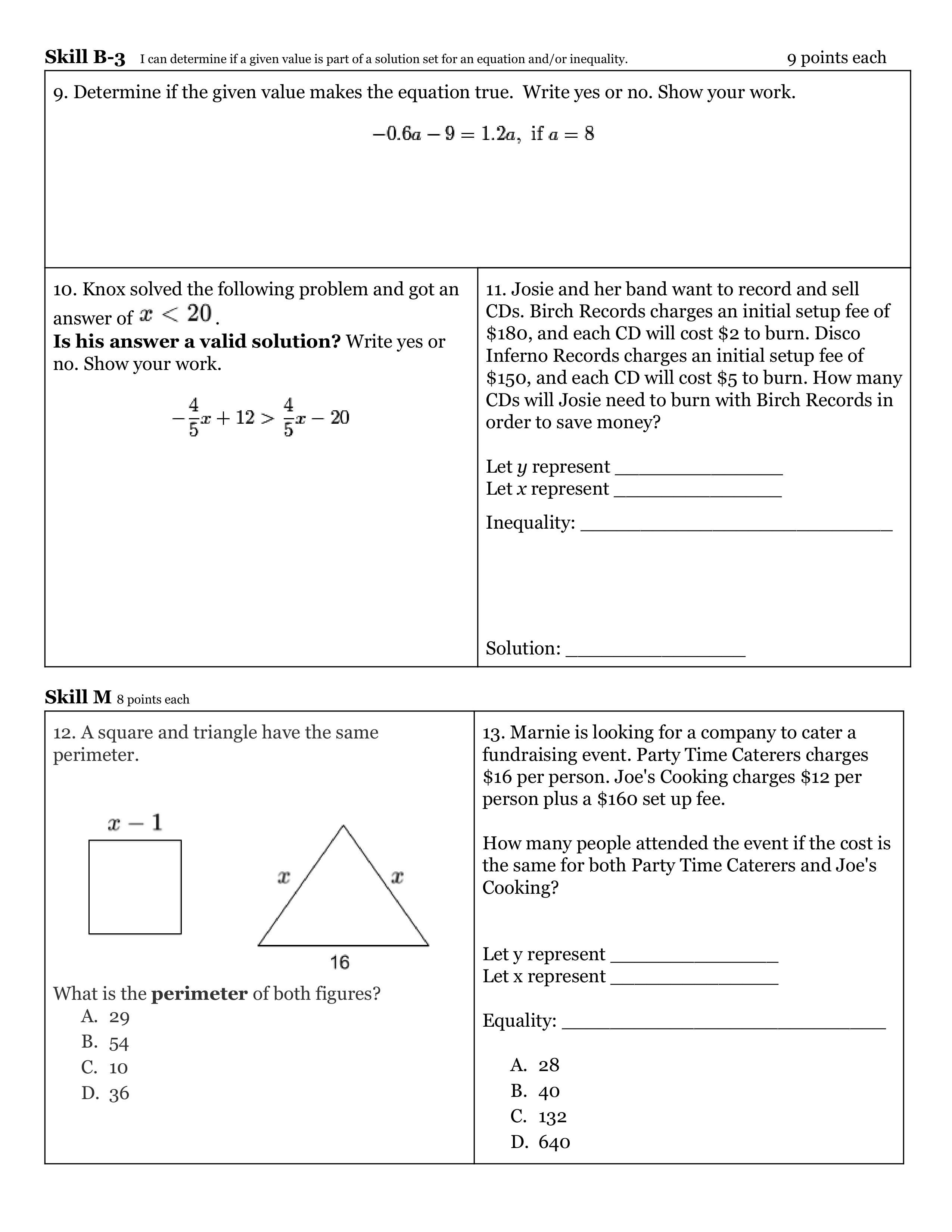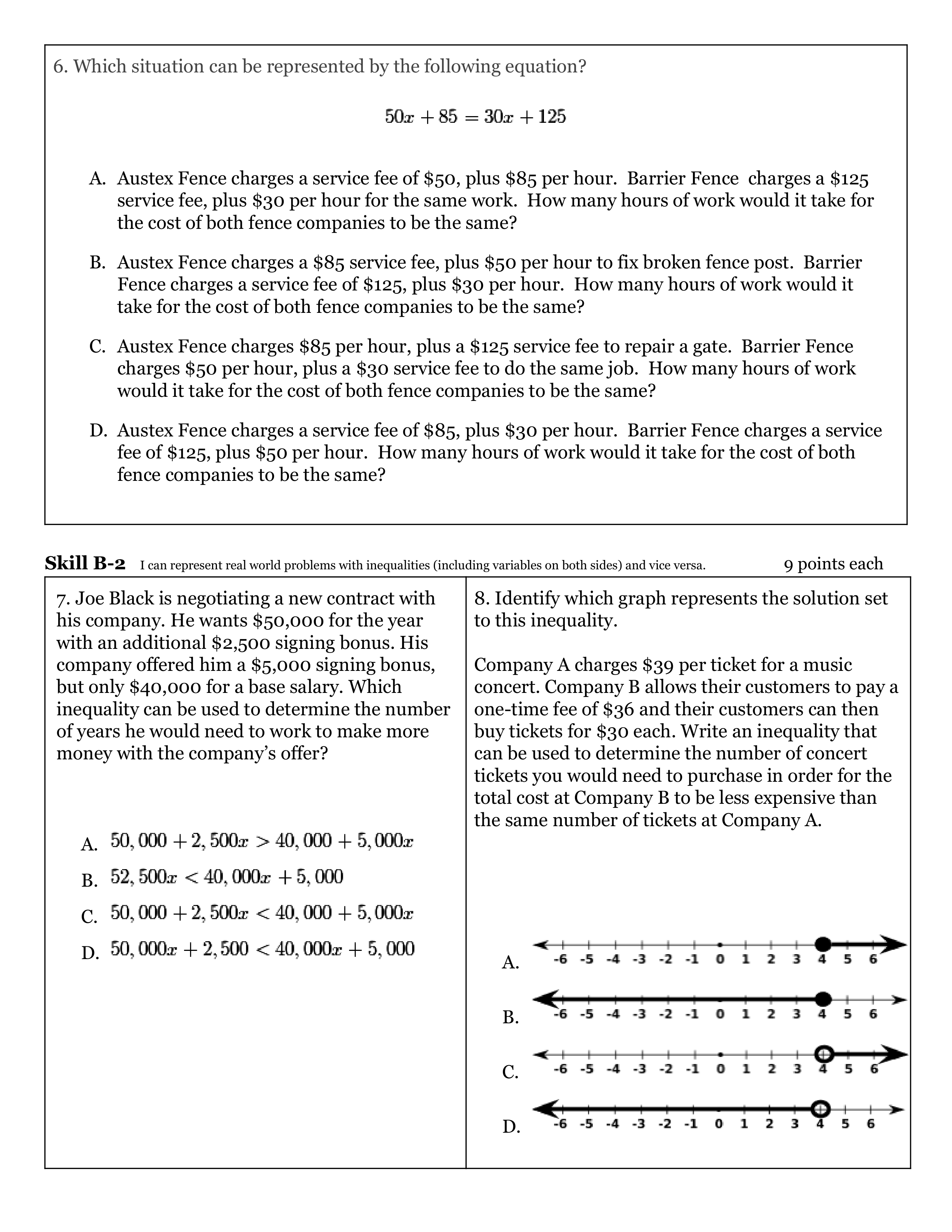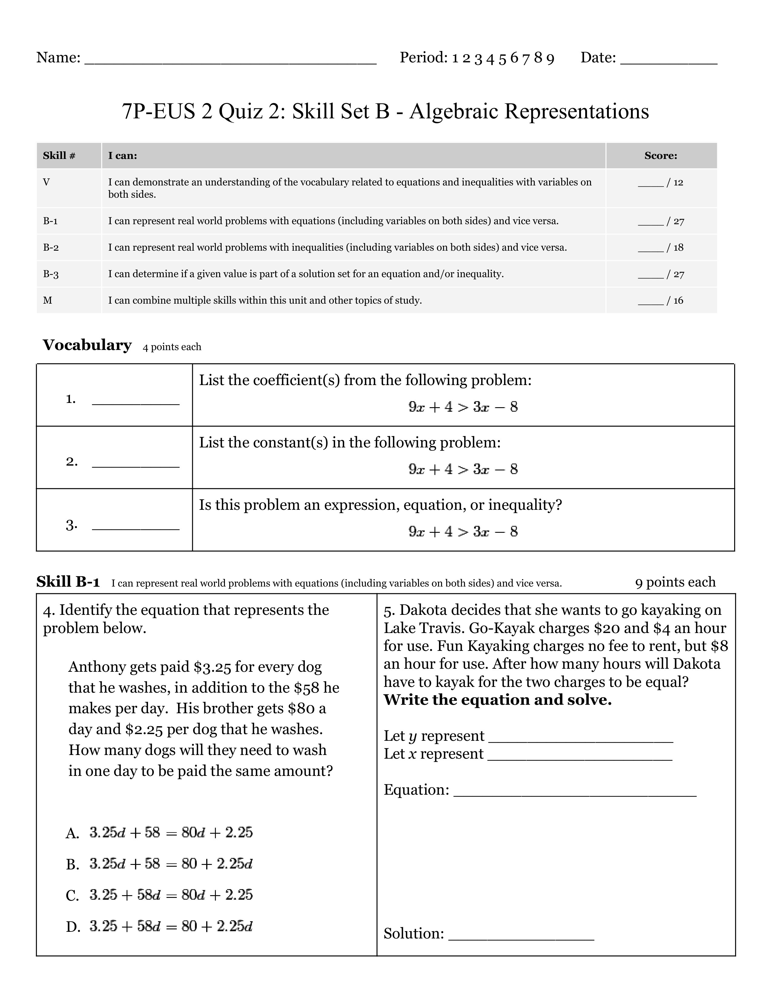 7P-EUS 2 Quiz 2: Skill Set B - Algebraic Representations
