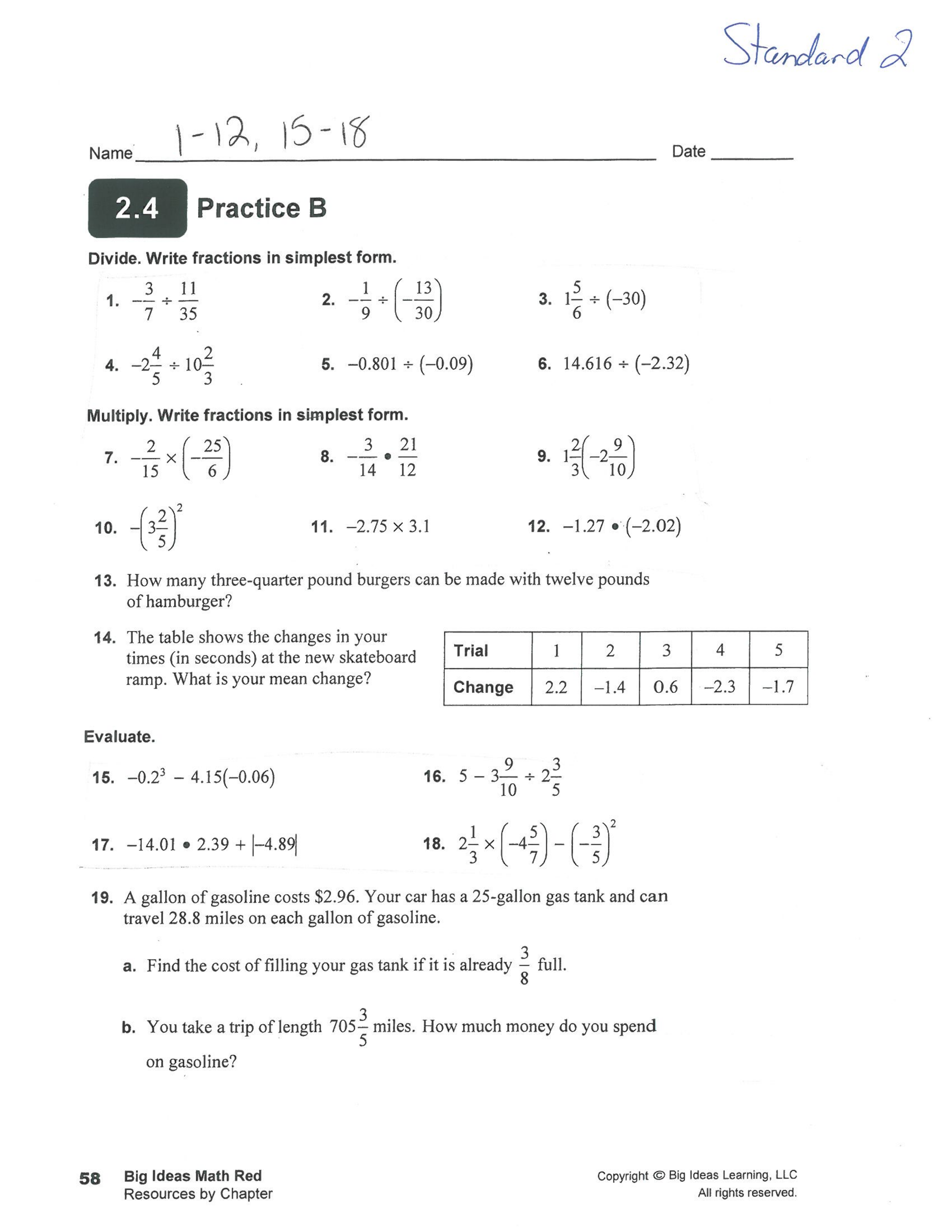 Standard 2 Worksheets