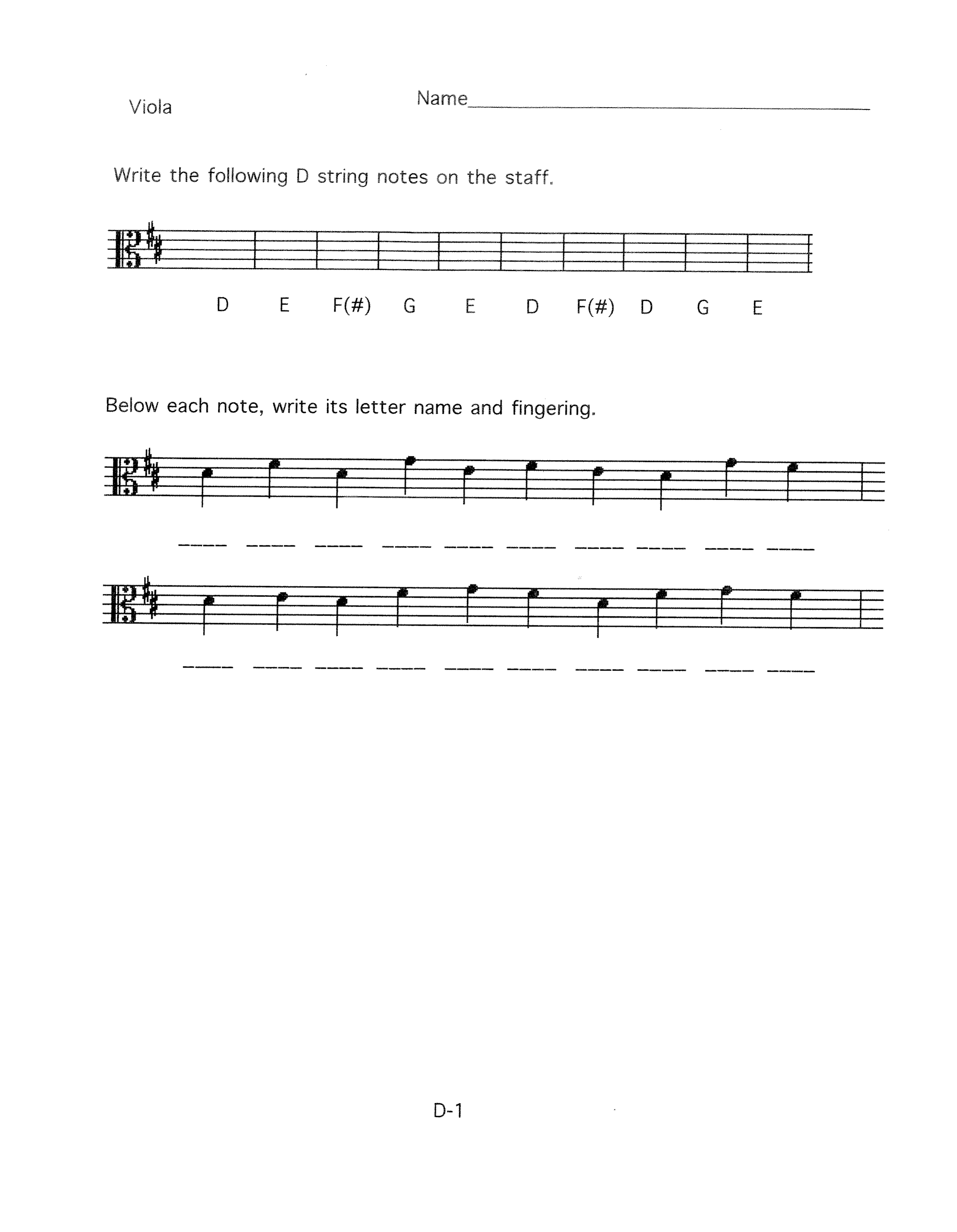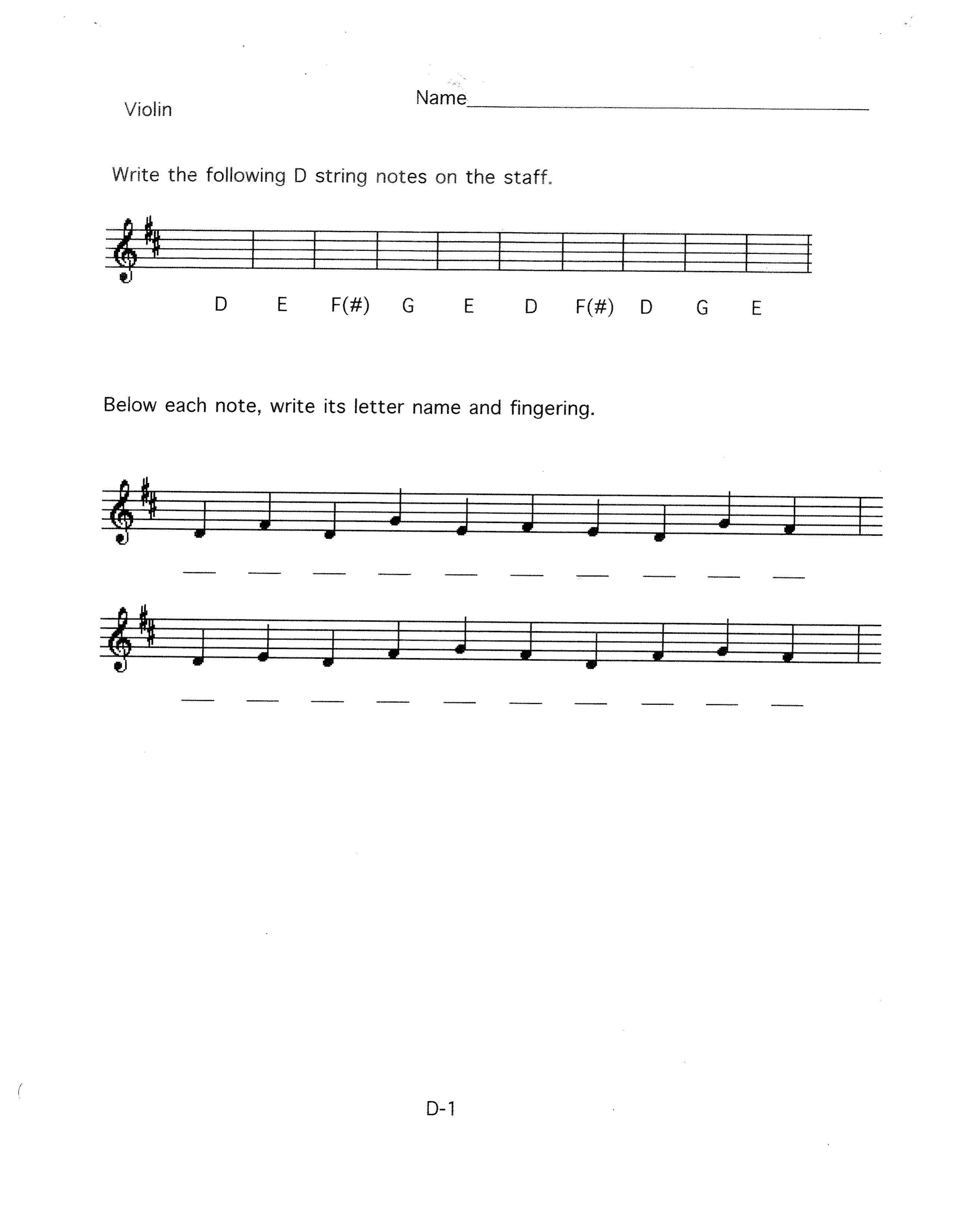 Orchestra Worksheet D-1