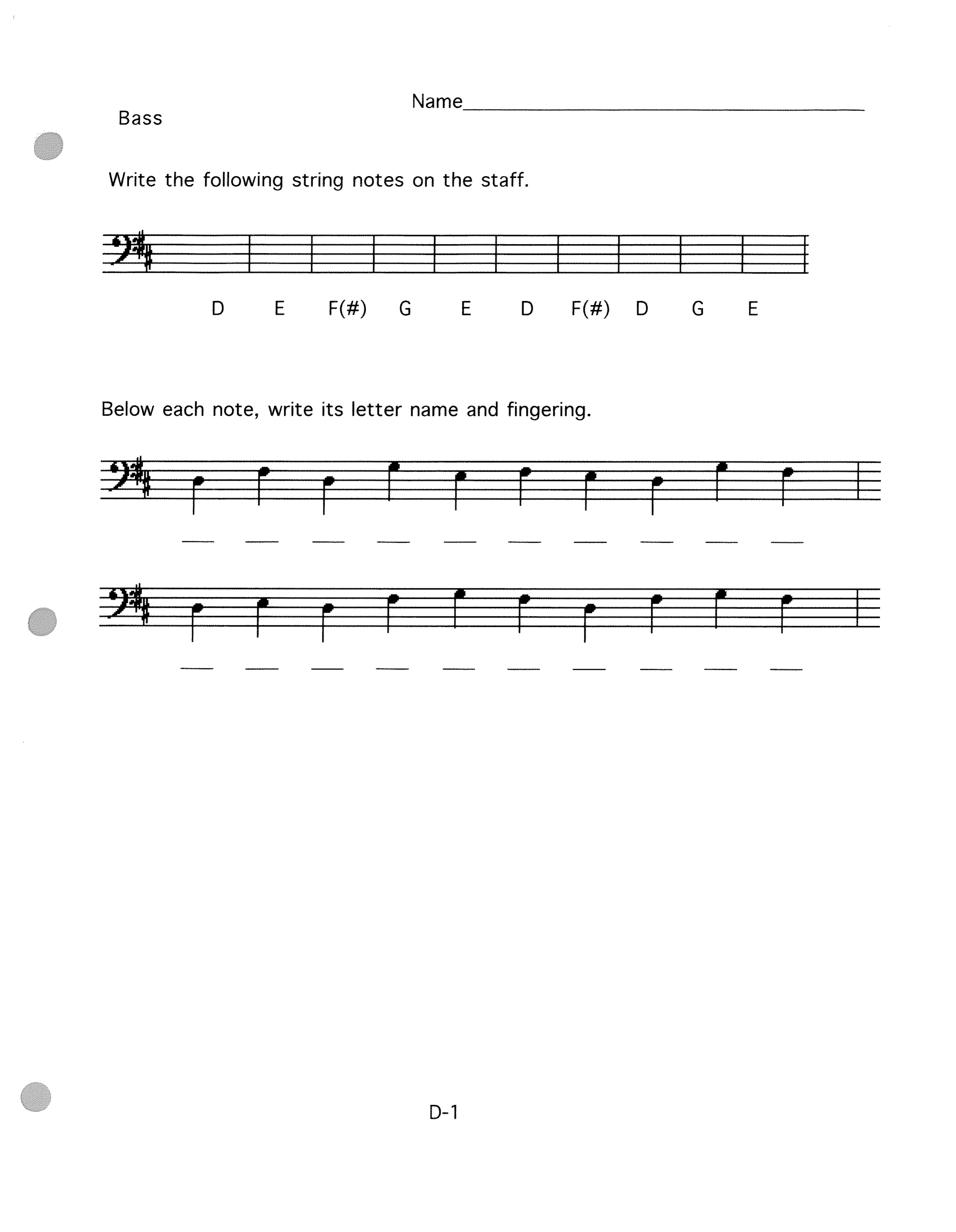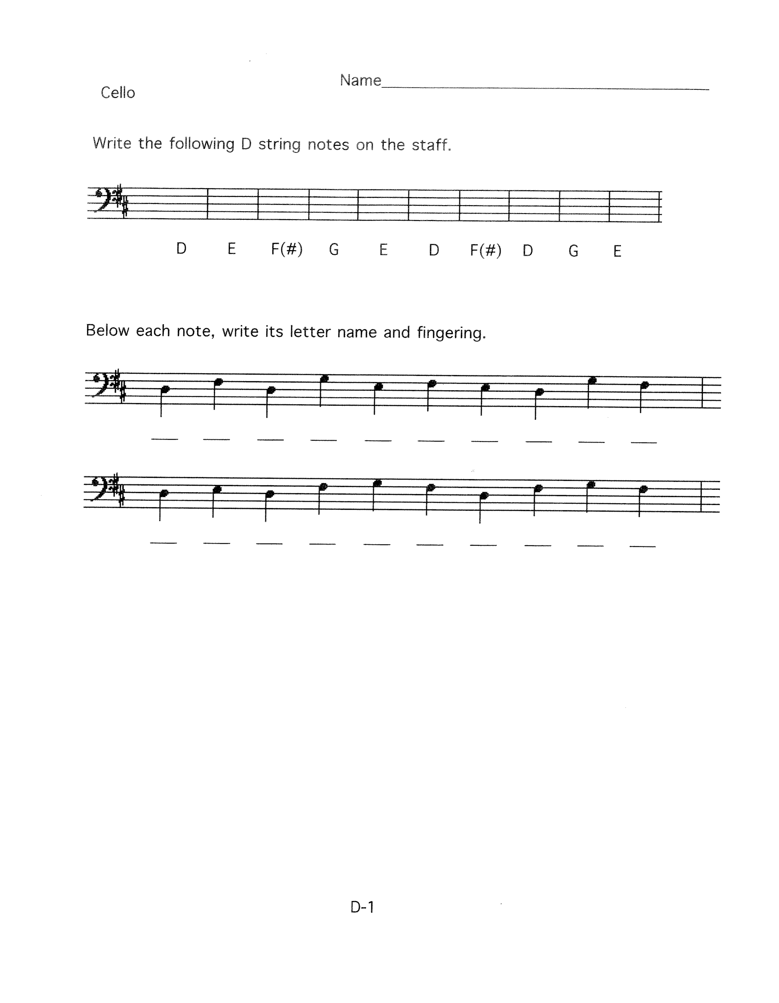 Write the following D strings notes on the staff.