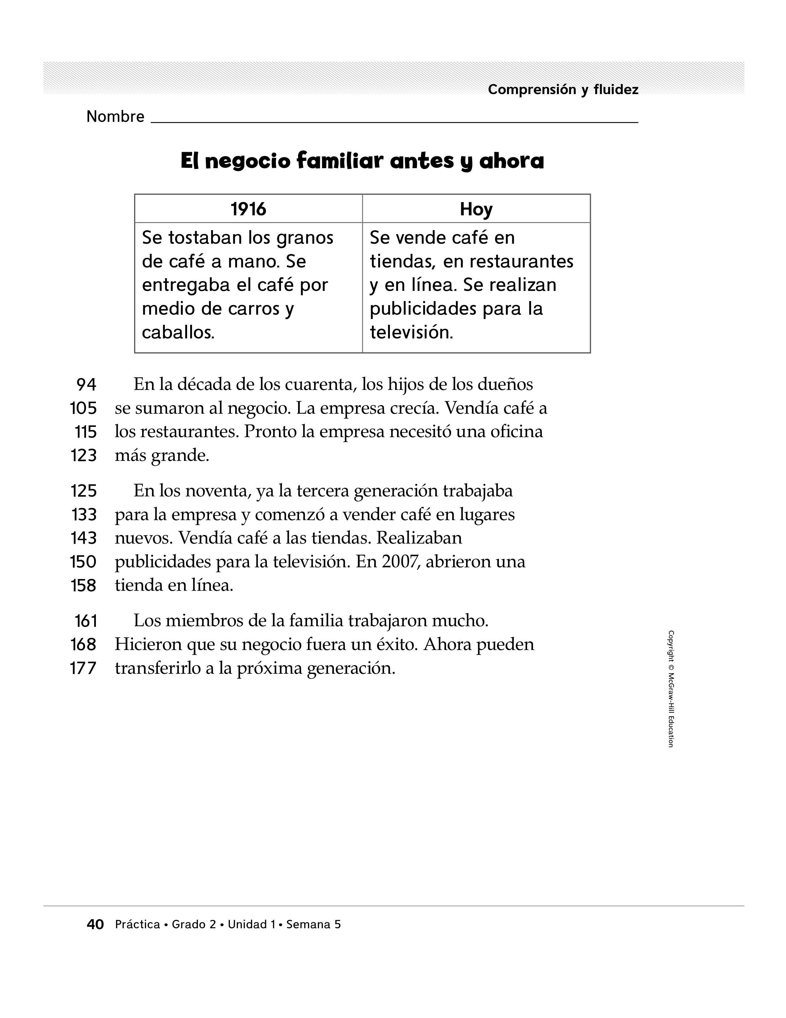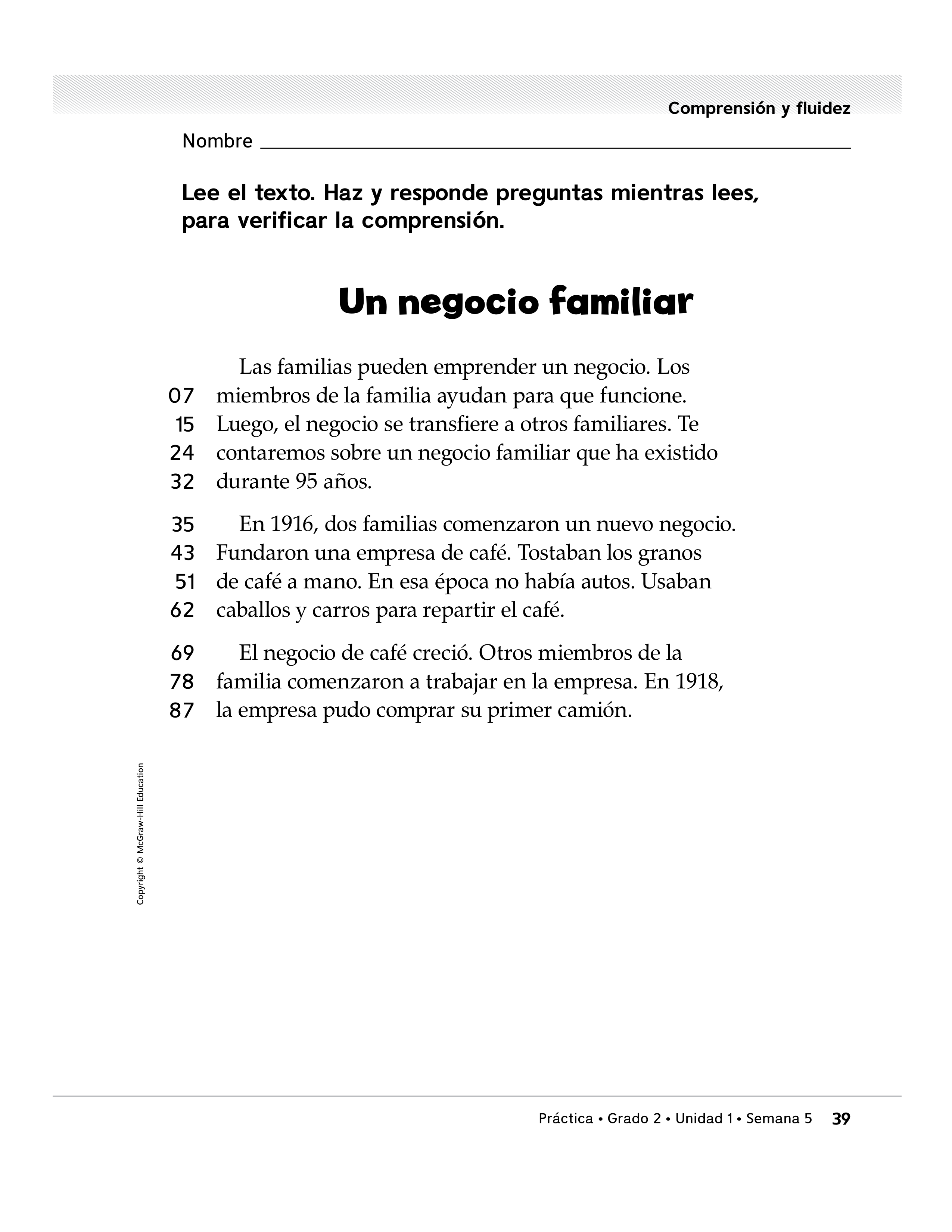 Prueba de comprensión 1.5 Un negocio familiar (Detalles clave)