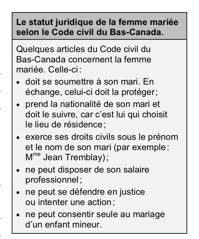 D’après le document ci-contre, comment les femmes mariées sont-elles considérées sur le plan juridique à la fin du 19e siècle?