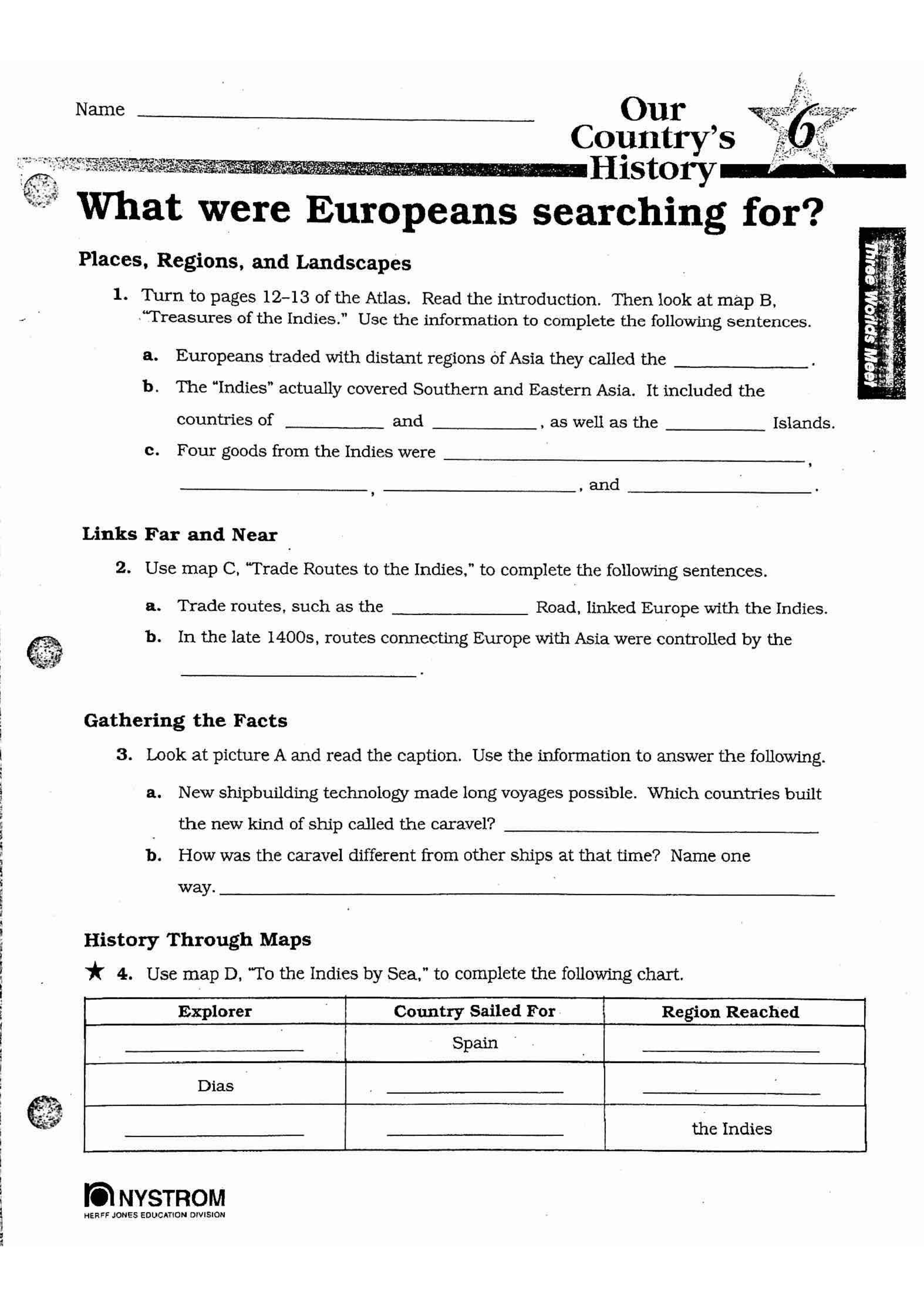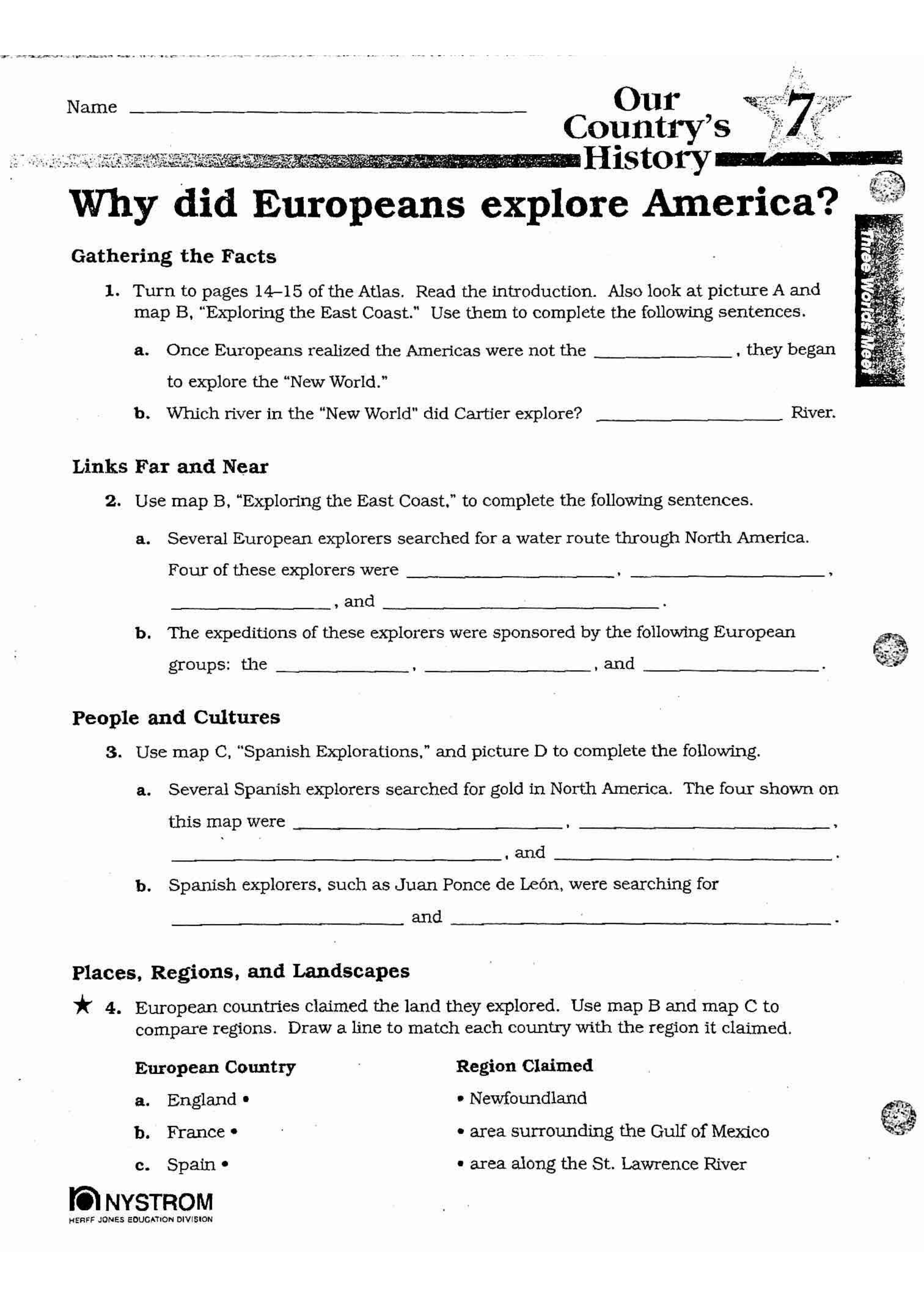 Use the Our Country's History Atlas to complete. Carefully