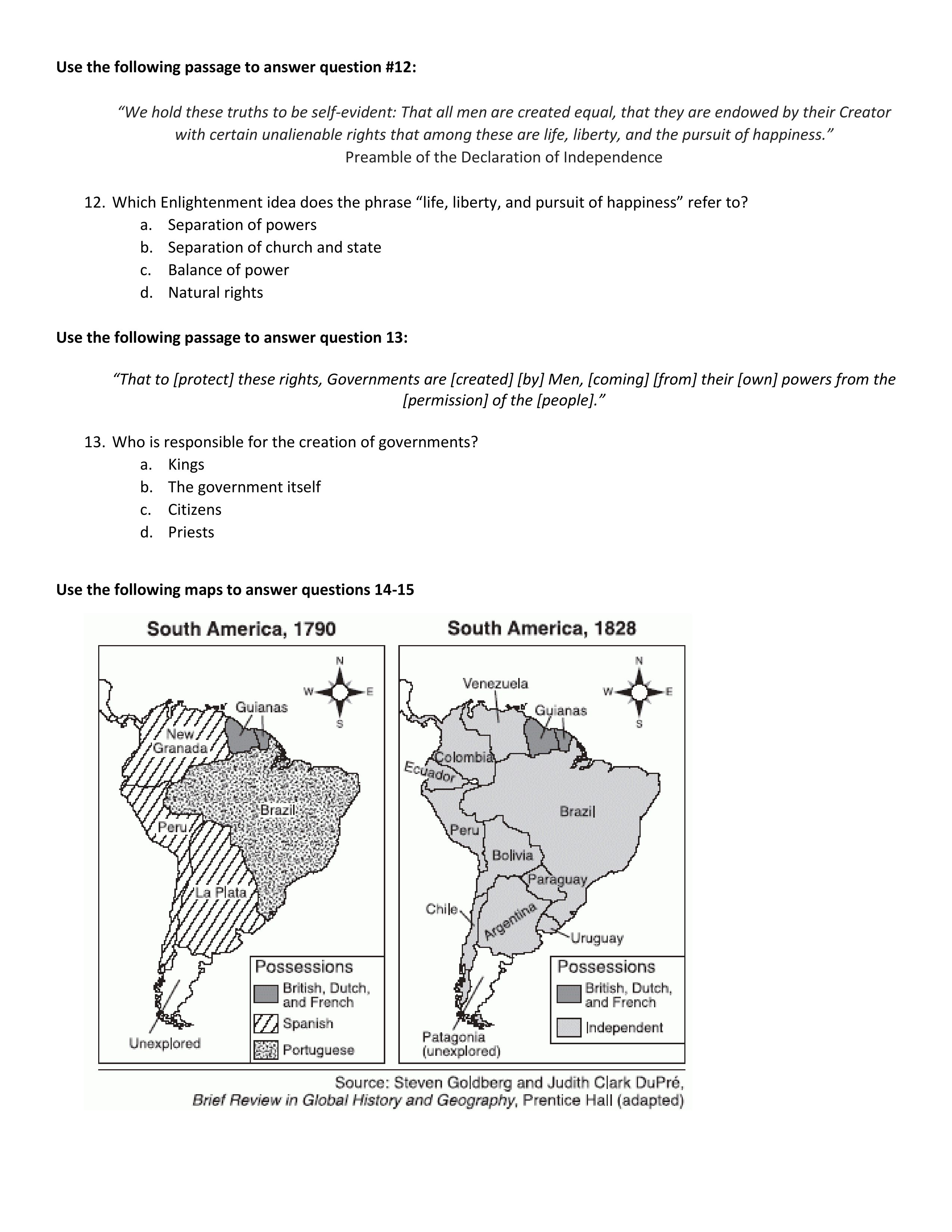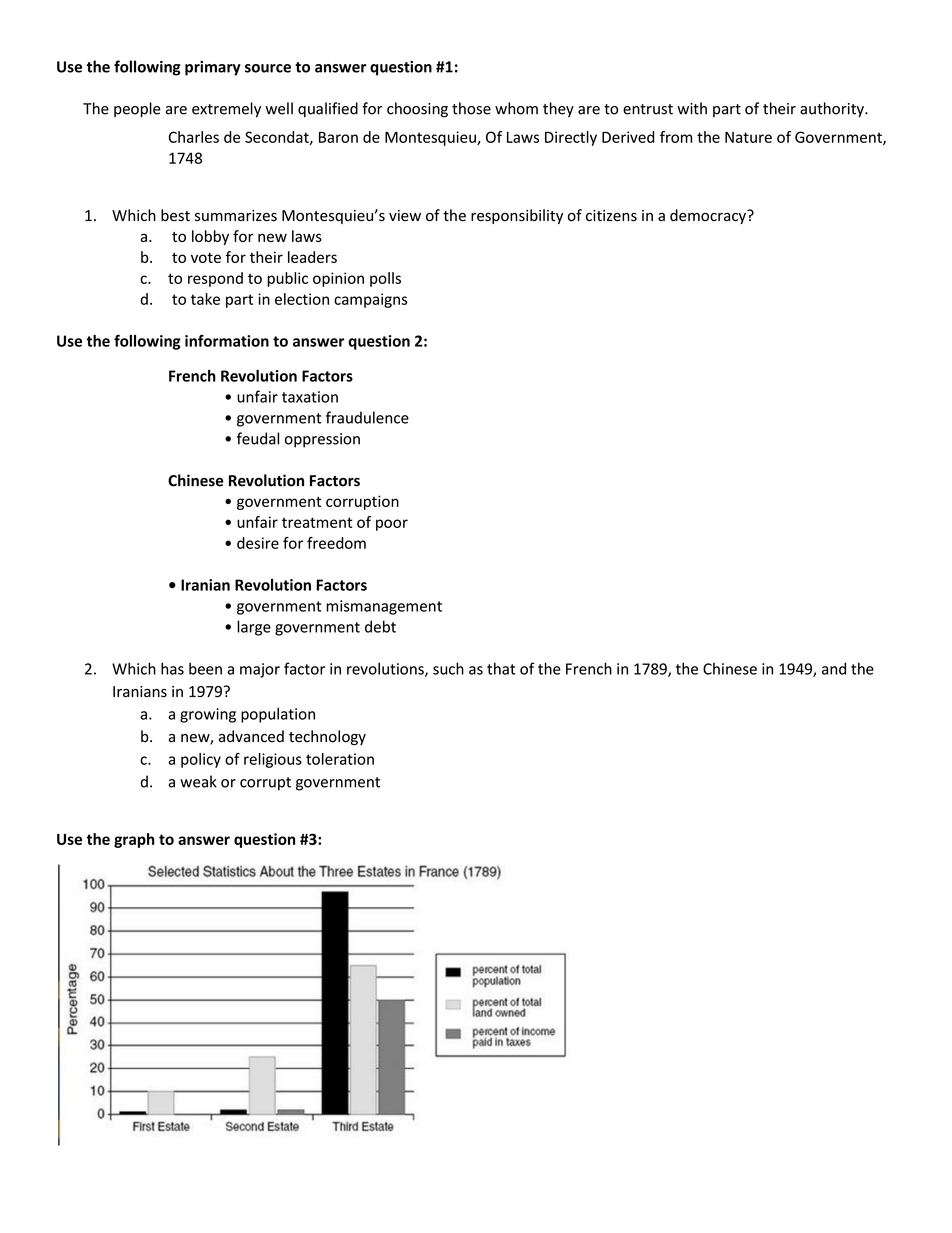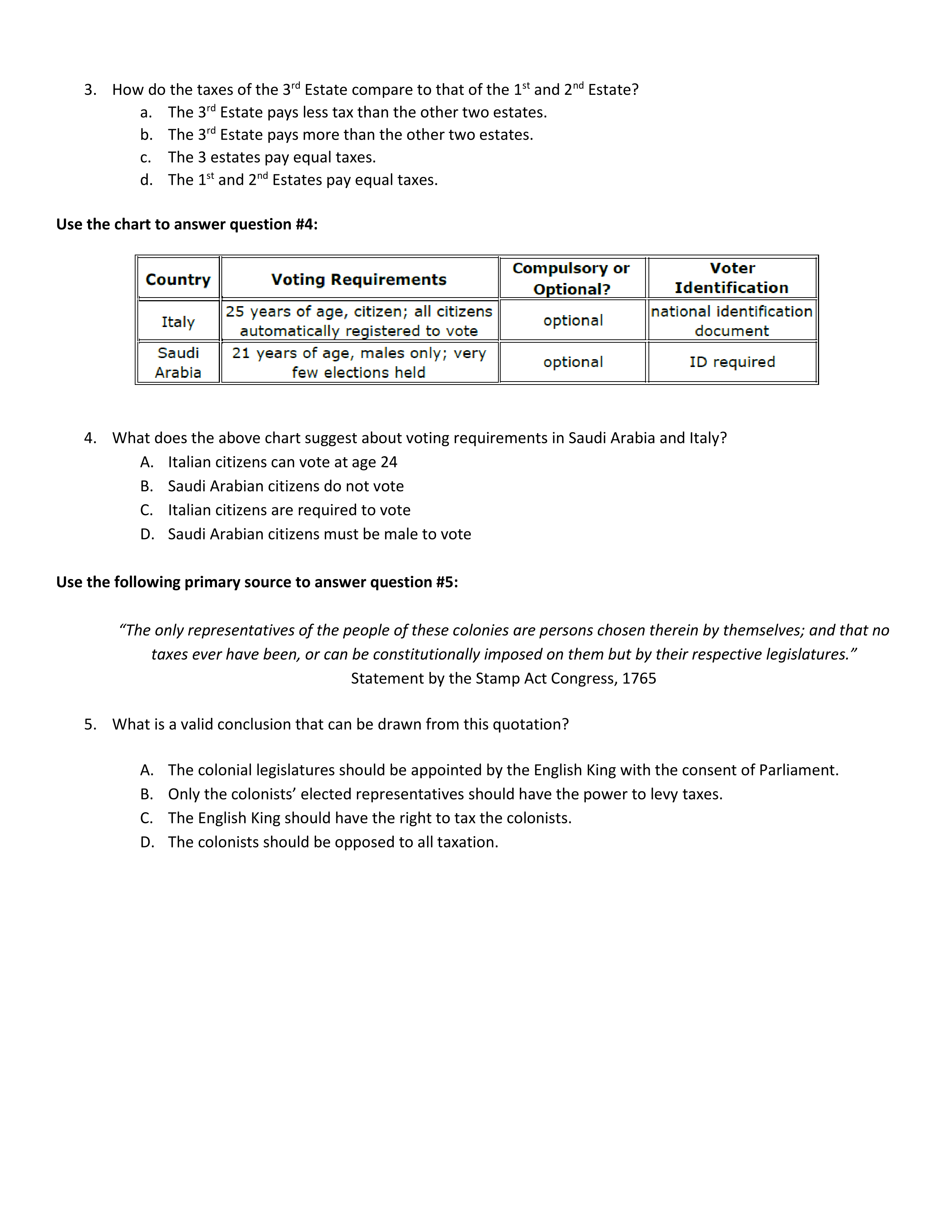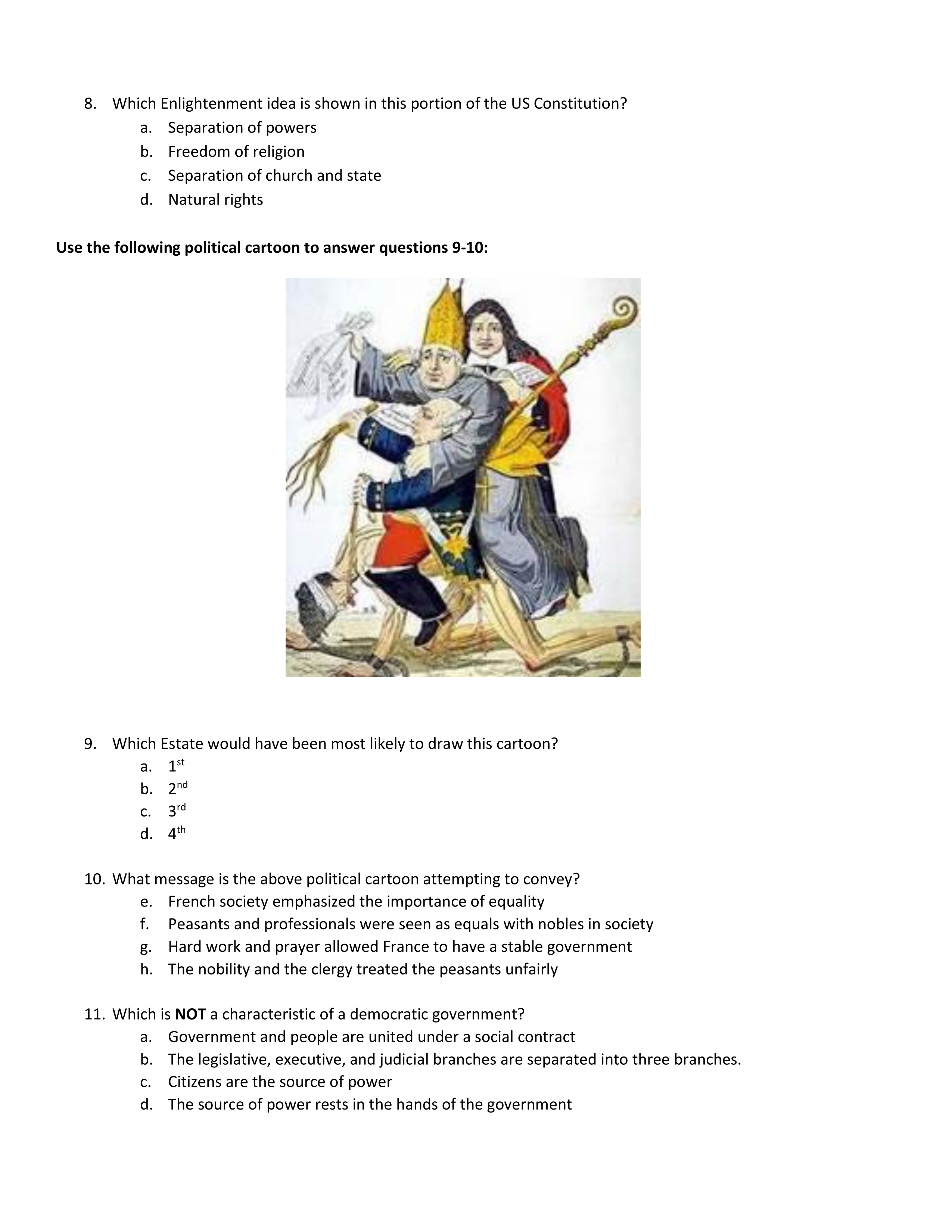 A quiz over the central concepts of the three Atlantic Revolutions and the Enlightenment.
