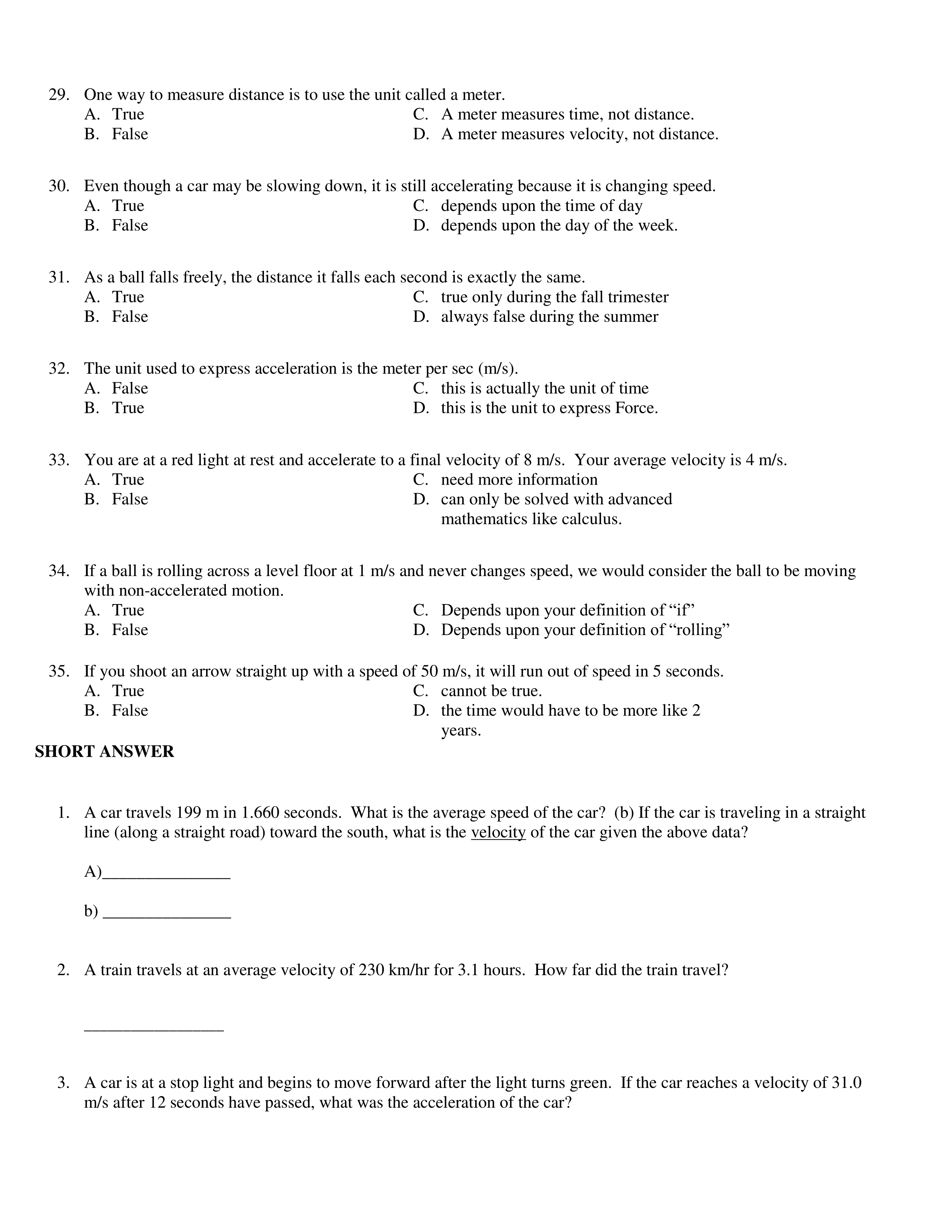 Linear Motion Review