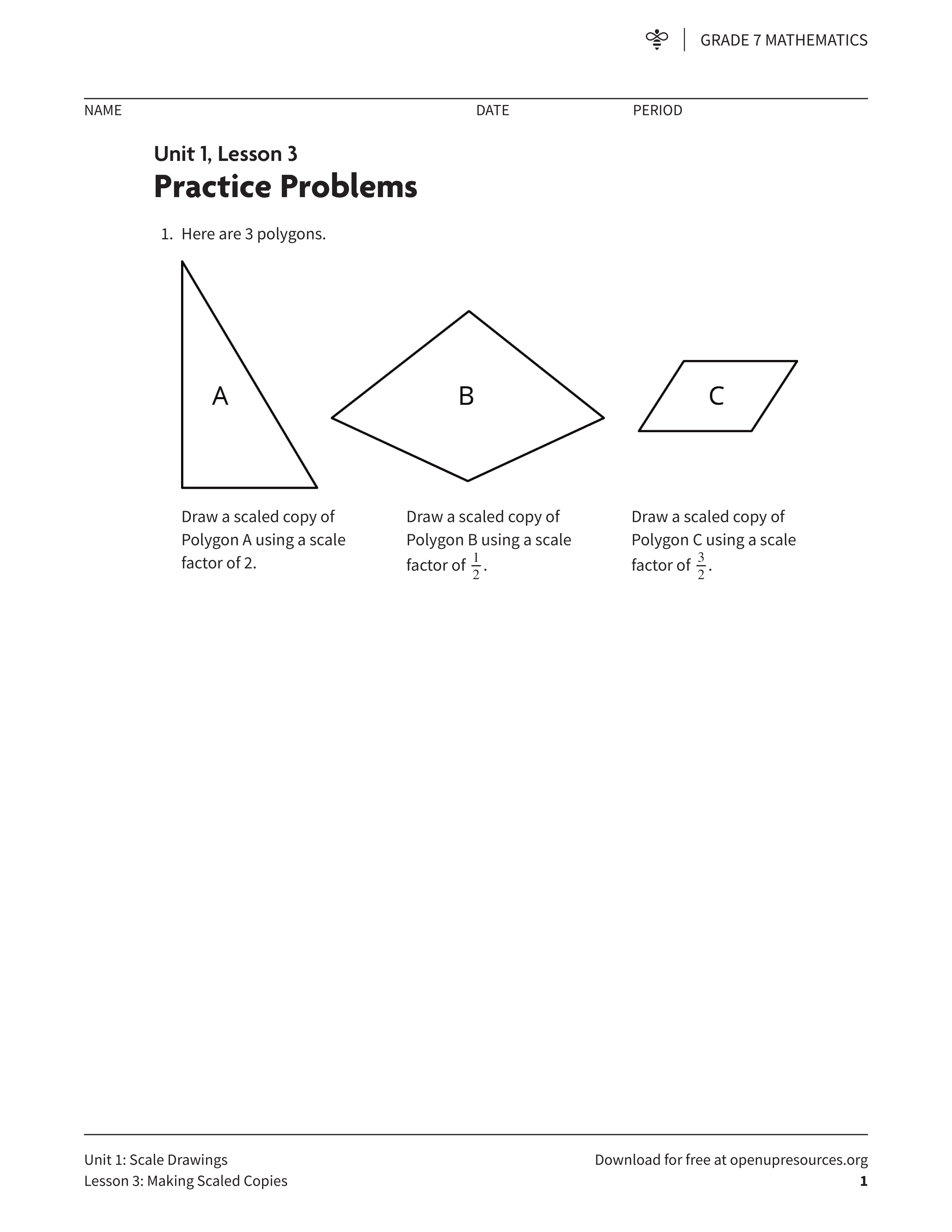 Use grid paper and class copies to draw the figures using the directions given and label all sides. Return to teacher.