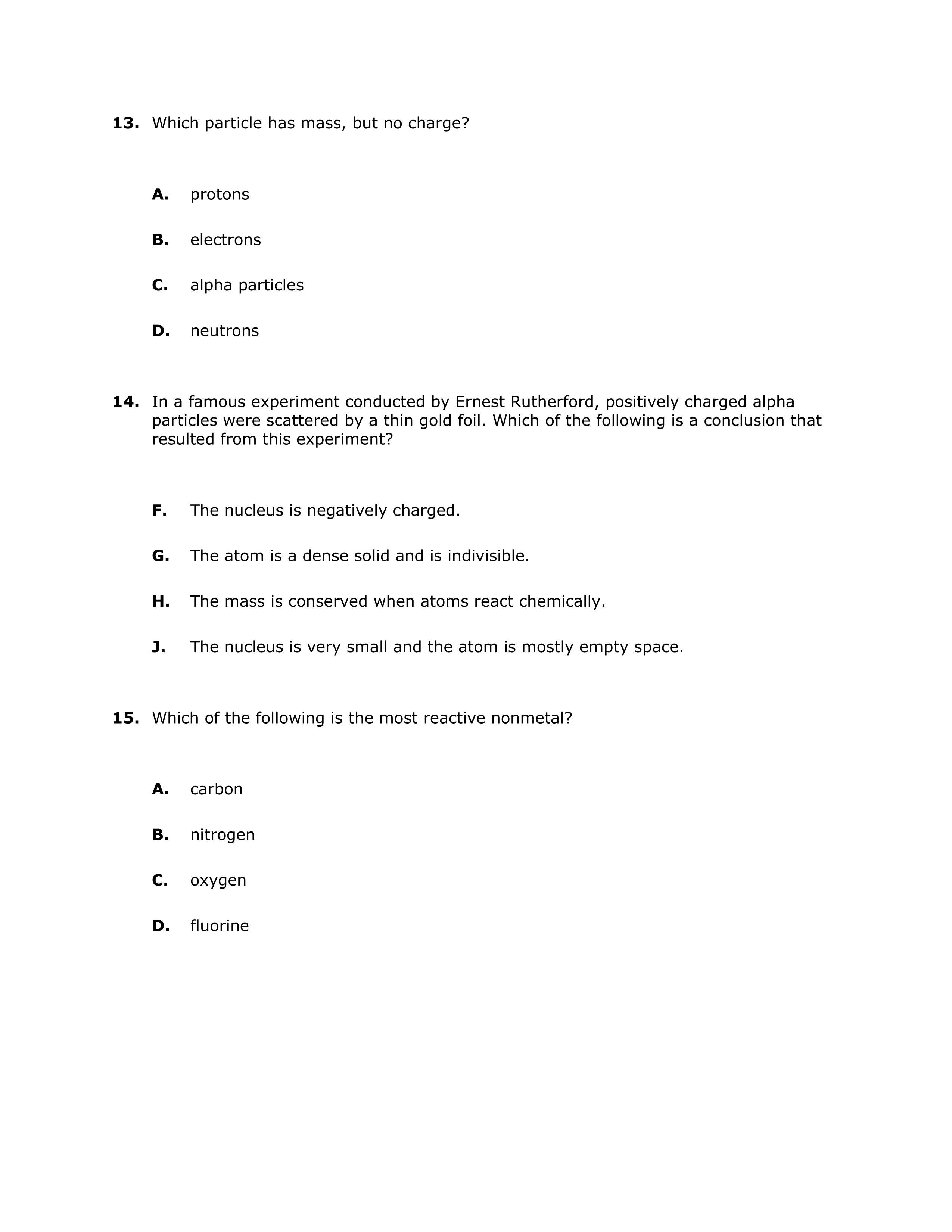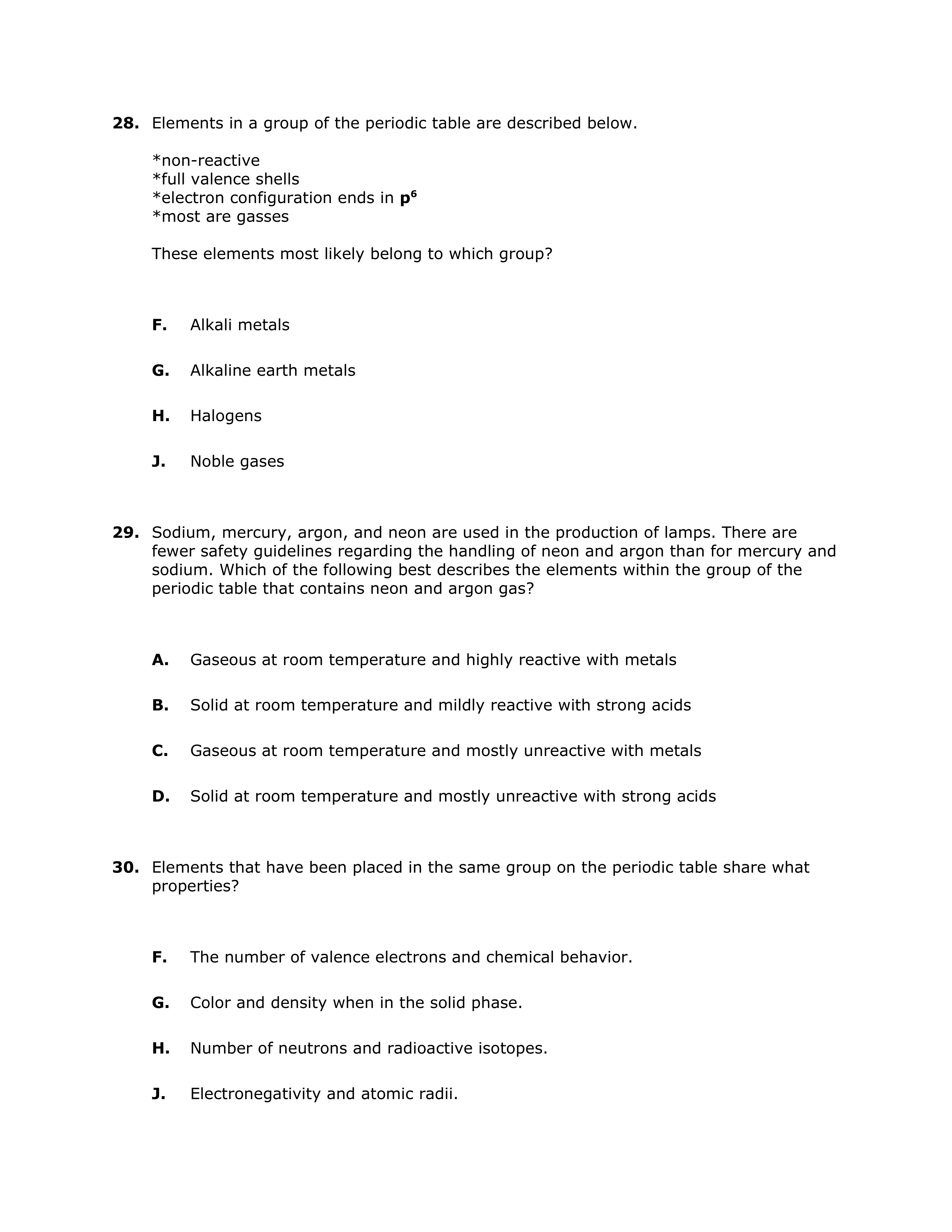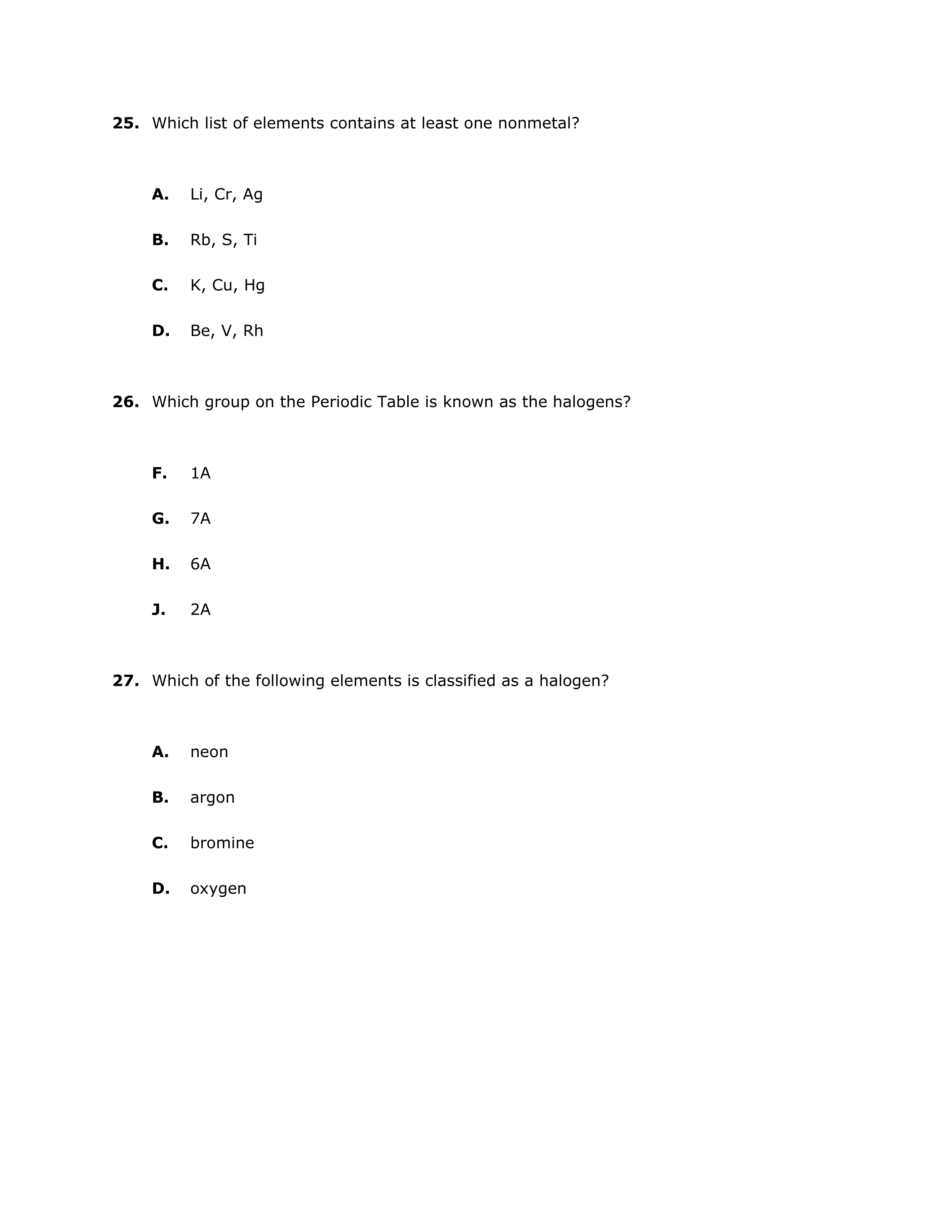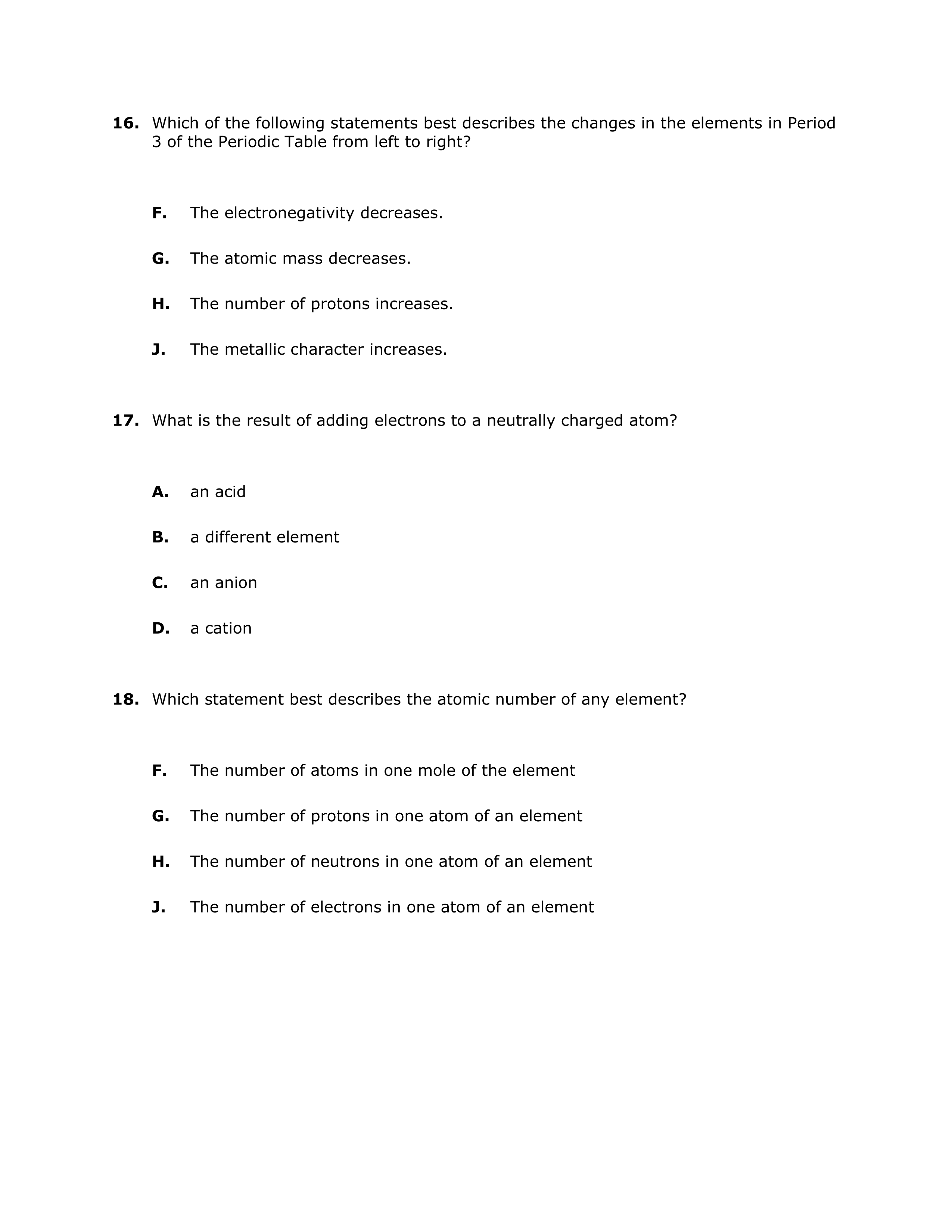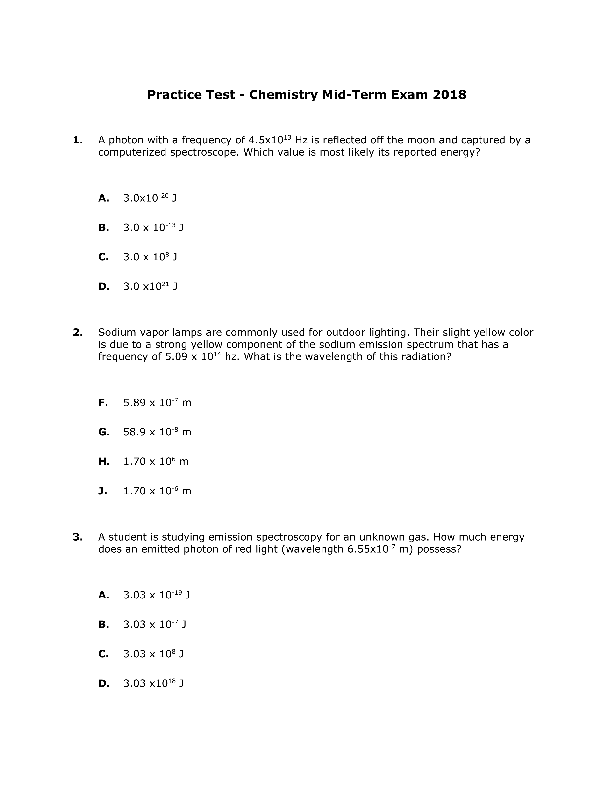 Chemistry Mid-Term Practice 2018