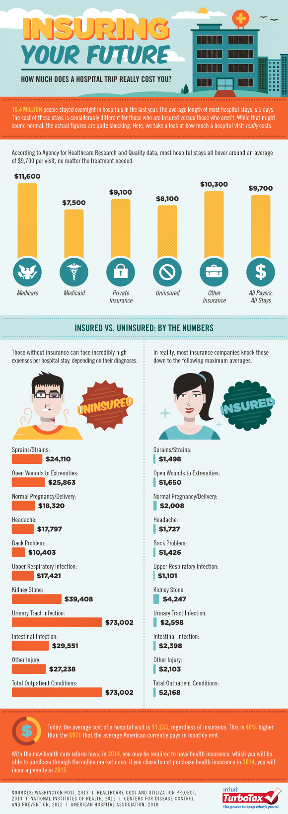 How does the cost of a hospital visit vary depending on the type of health insurance?