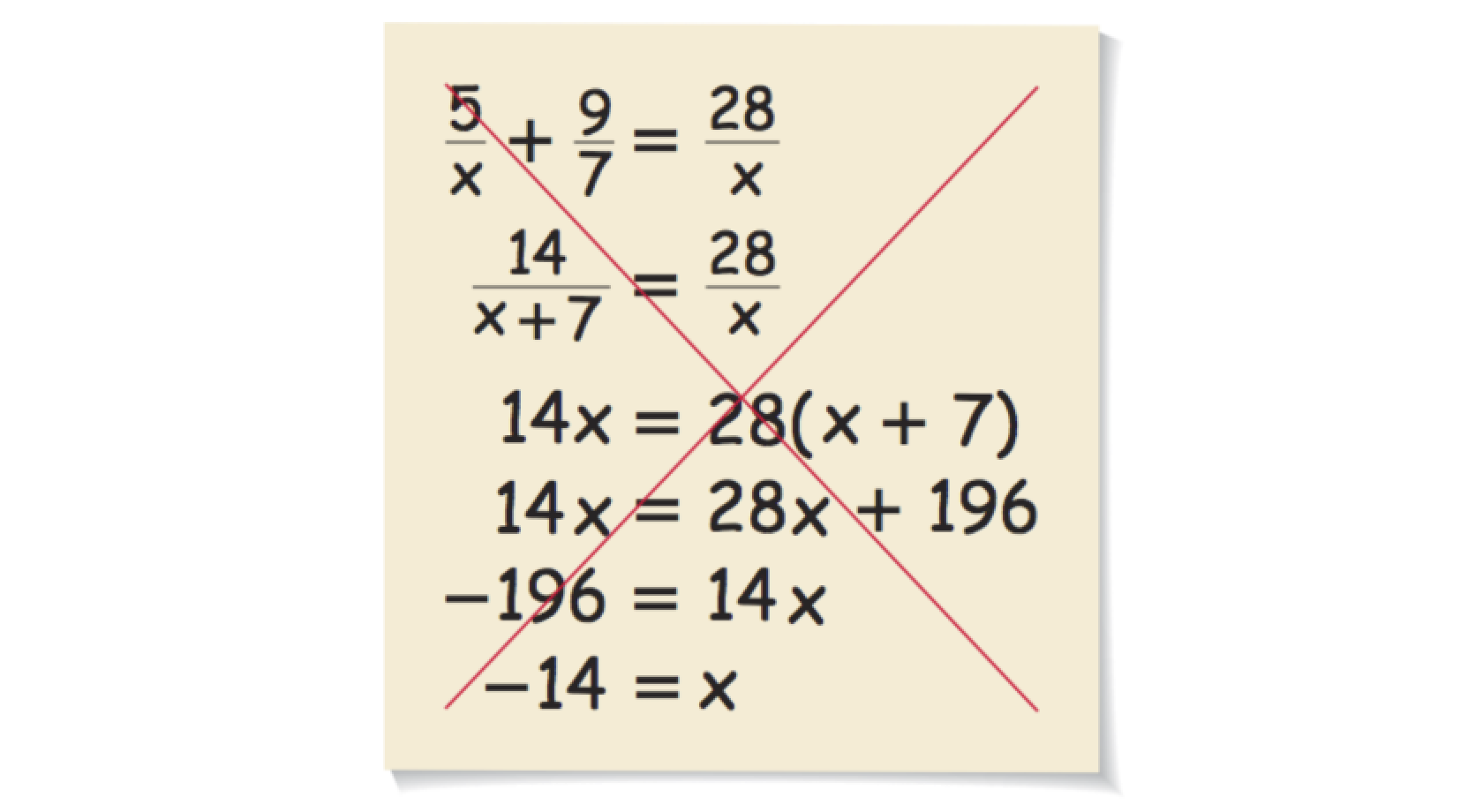 Open-Ended: Write a rational equation including at least two rational expressions that have different denominators and the following LCD.