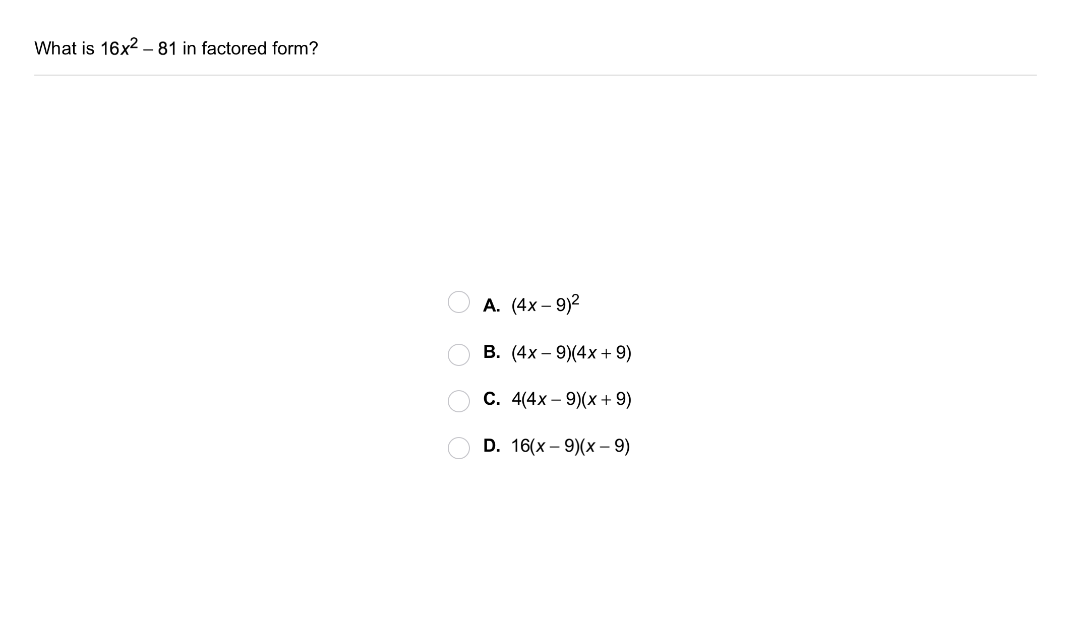 Take Note: Provide an example of a difference of two squares written in standard form.