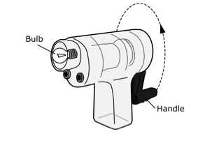 The illustration above shows a hand generator. Turning the handle of the generator spins a magnet and creates an electric current that lights the bulb. Which of the following observations can be used to indicate the strength of the current created by the generator?
