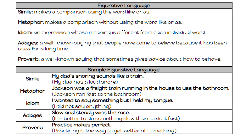 Grade 4- Figurative Language (L.3.5a and L.3.5 b)