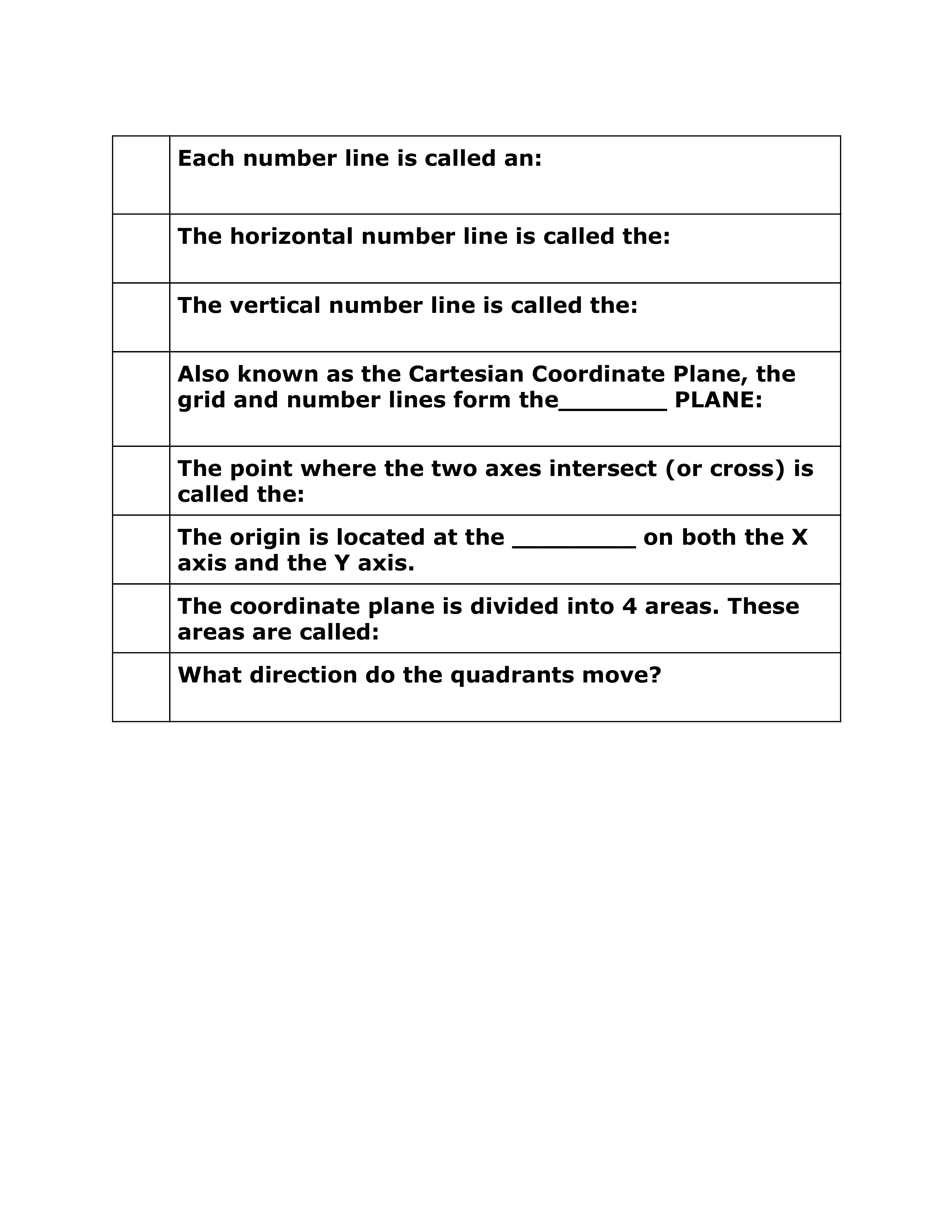Also known as the Cartesian Coordinate Plane, the grid and number lines form the_______ PLANE: