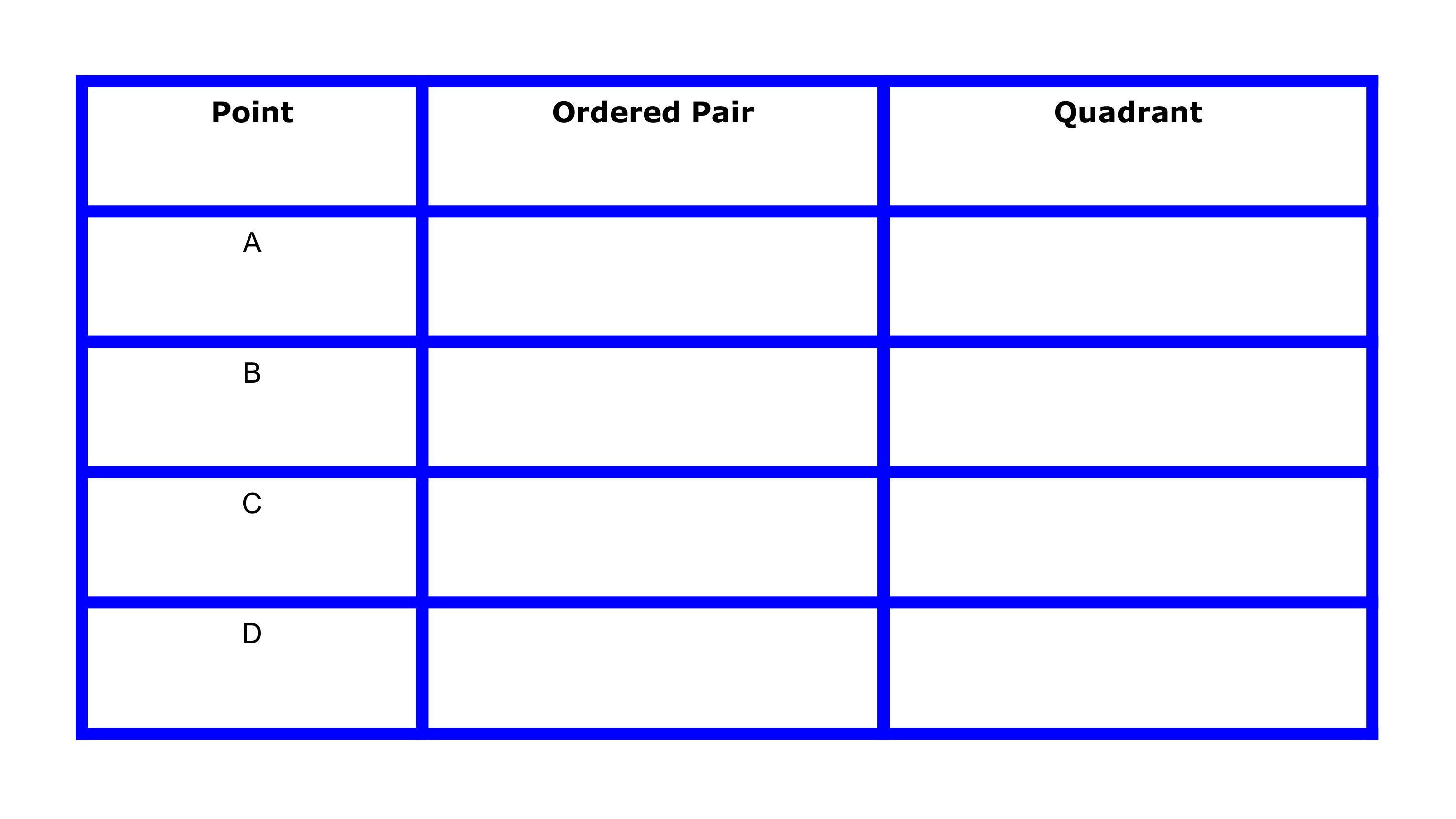 The coordinate plane is divided into 4 areas. These areas are called: