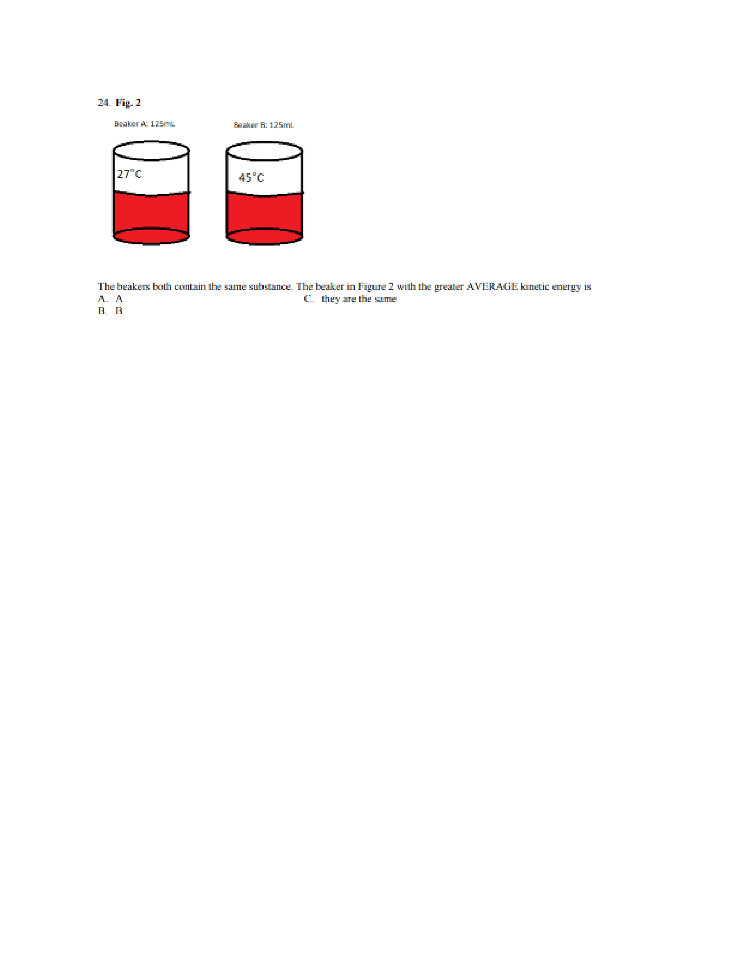 The beakers both contain the same substance. The beaker in Figure 2 with the greater AVERAGE kinetic energy is beaker