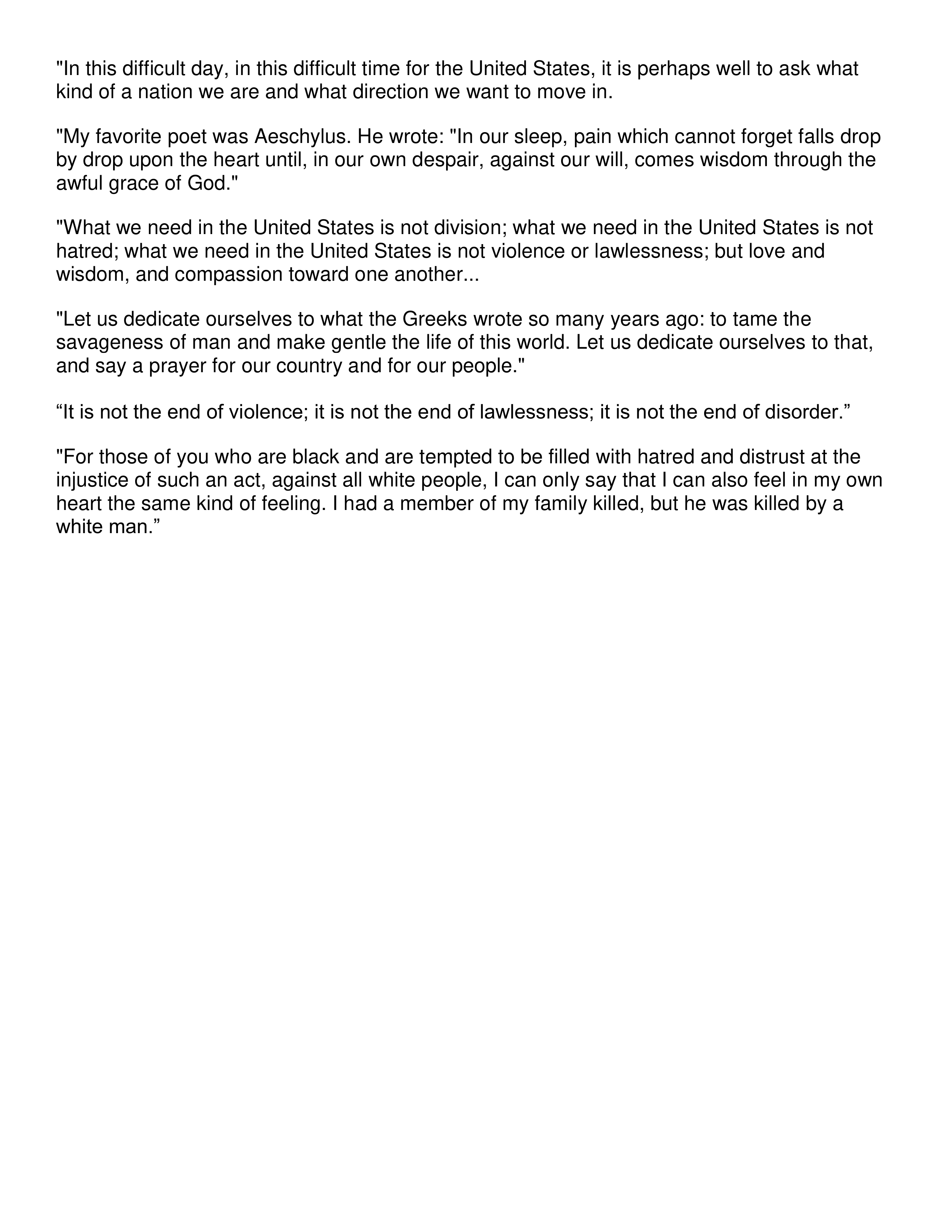 The most important thing RFK does with this passage is make an emotional connection to the audience.