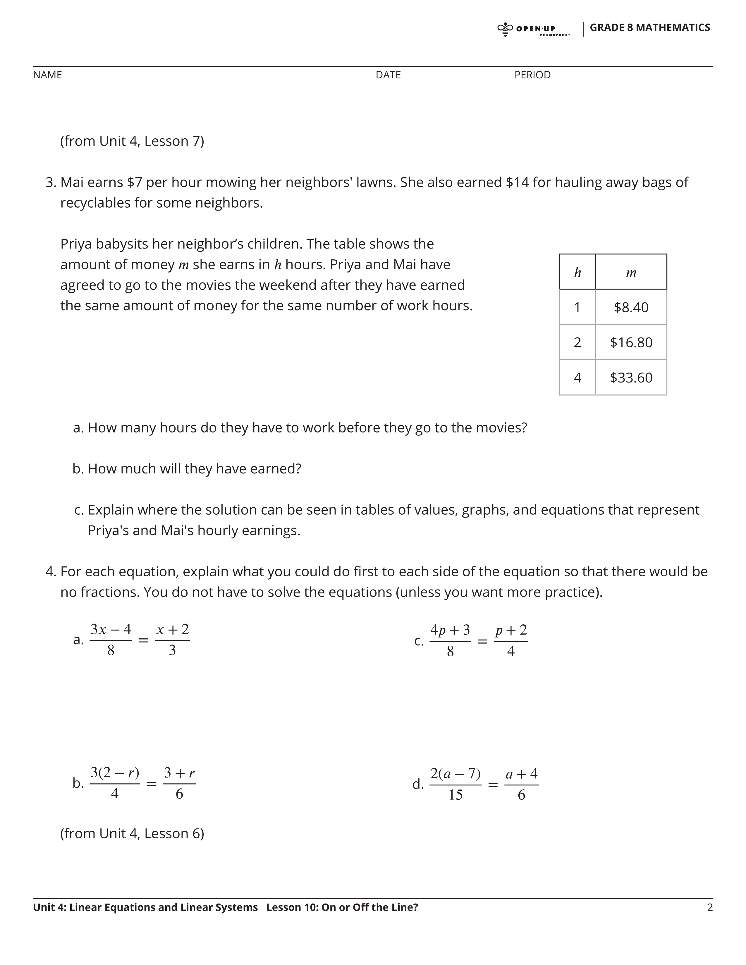 What could you do first to each side? (Mrs. Chapman will grade this question)