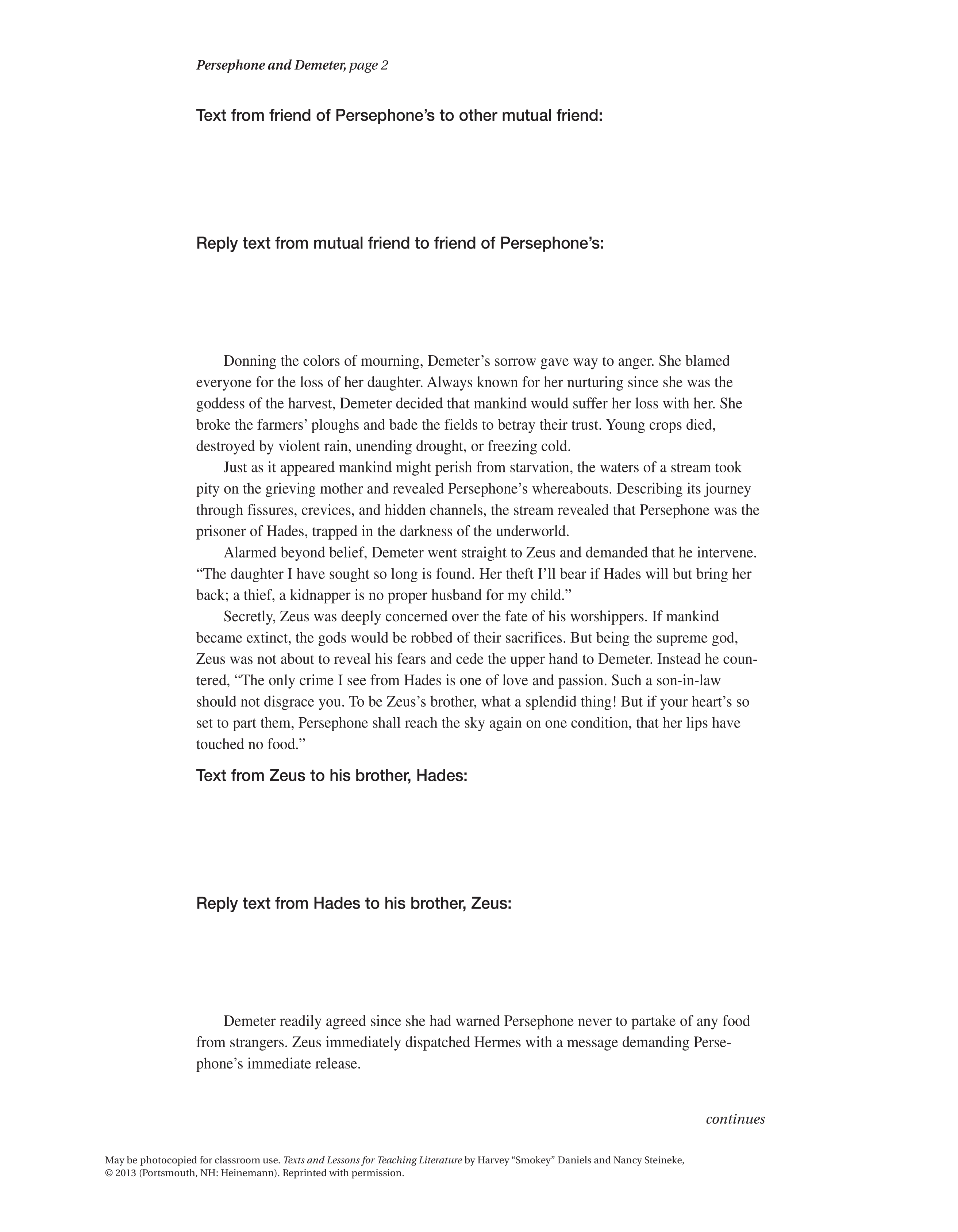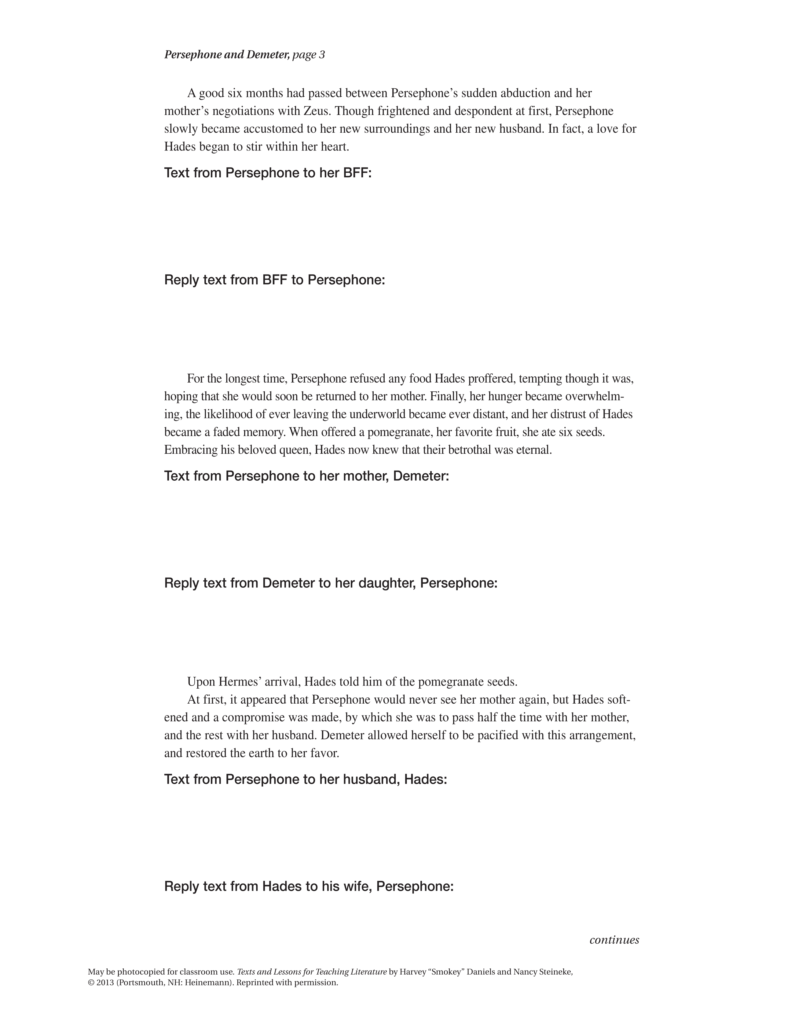 Looking for something to engage your students in Greek mythology? Give them this retelling of the classic tale of Persephone and Demeter! In this activity, the students will be taking on roles of story characters who text about the whole situation!