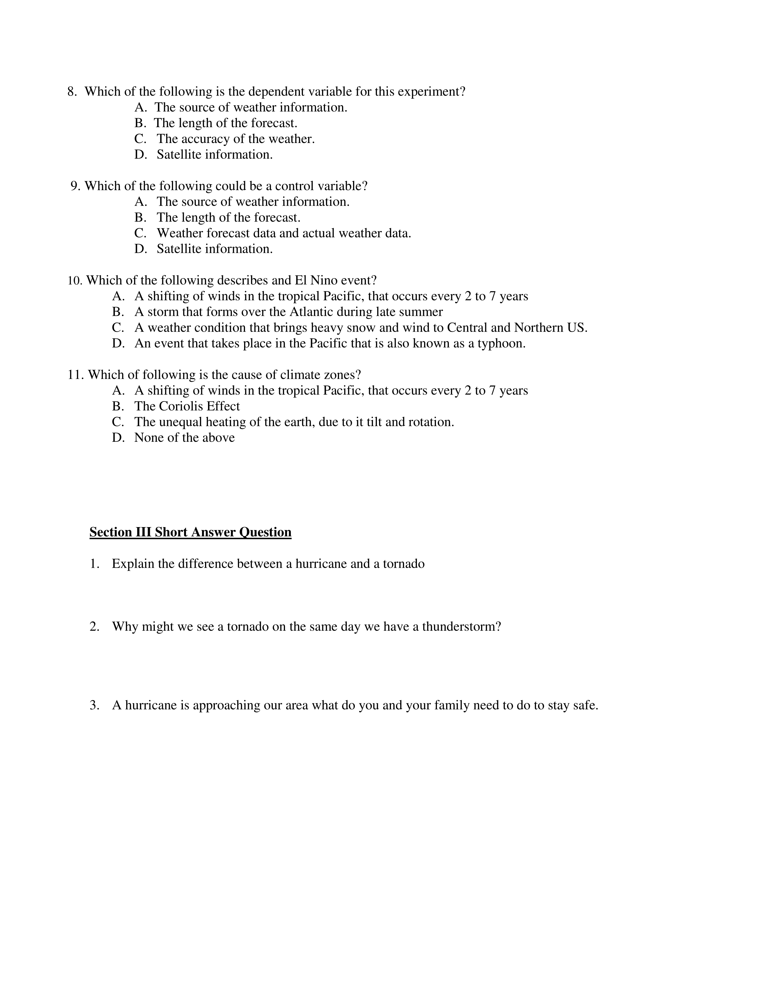 Hurricane is a large, swirling, low pressure system that forms over the warm Atlantic Ocean. Tornadoes is a funnel that meets Earth's surface & forms from thunderstorms.