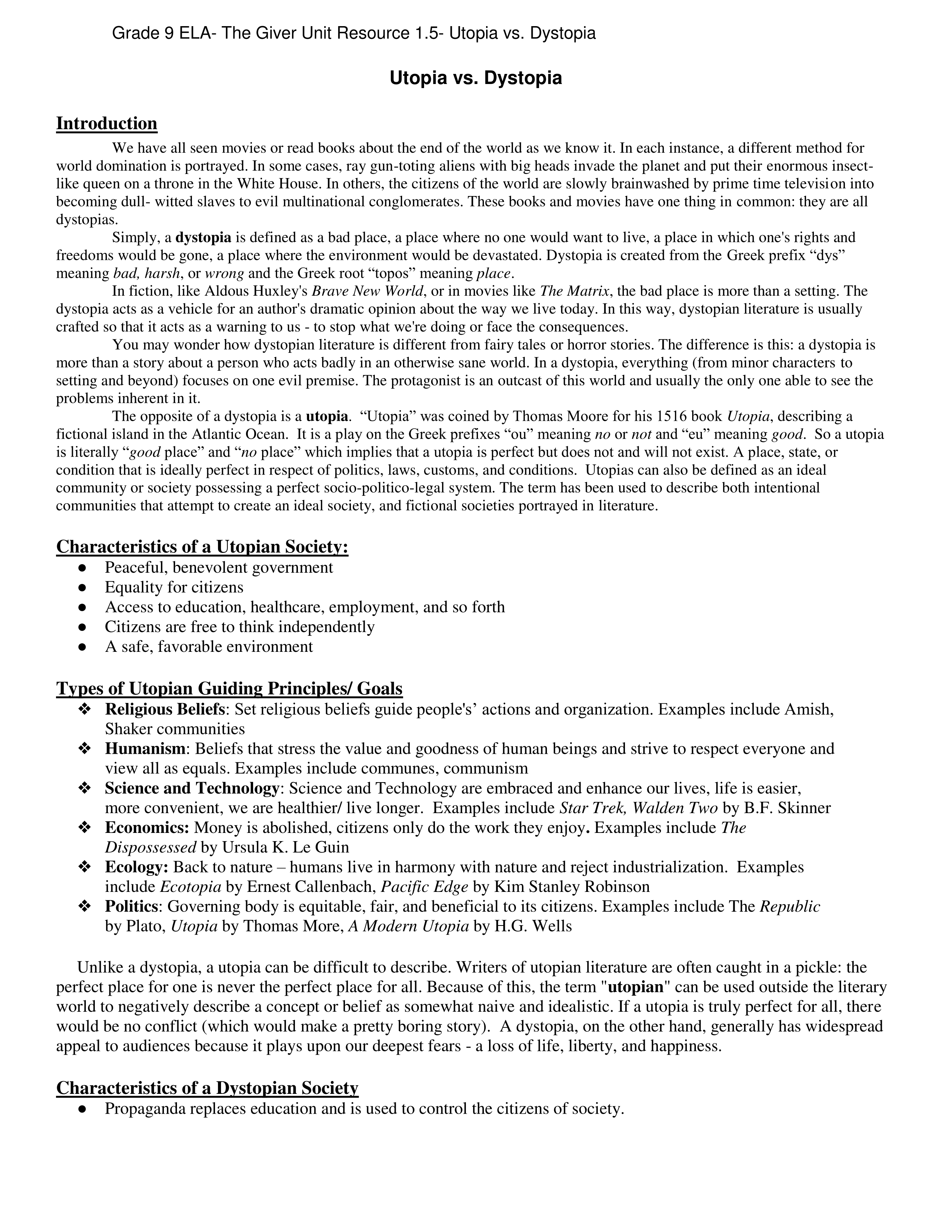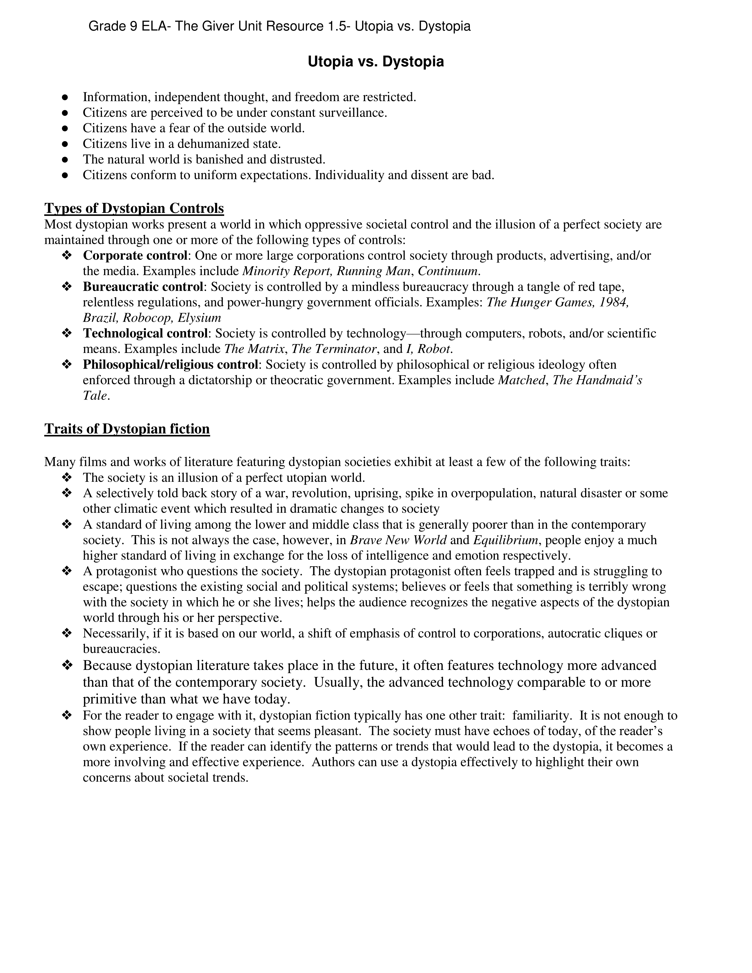 Dystopia Unit
