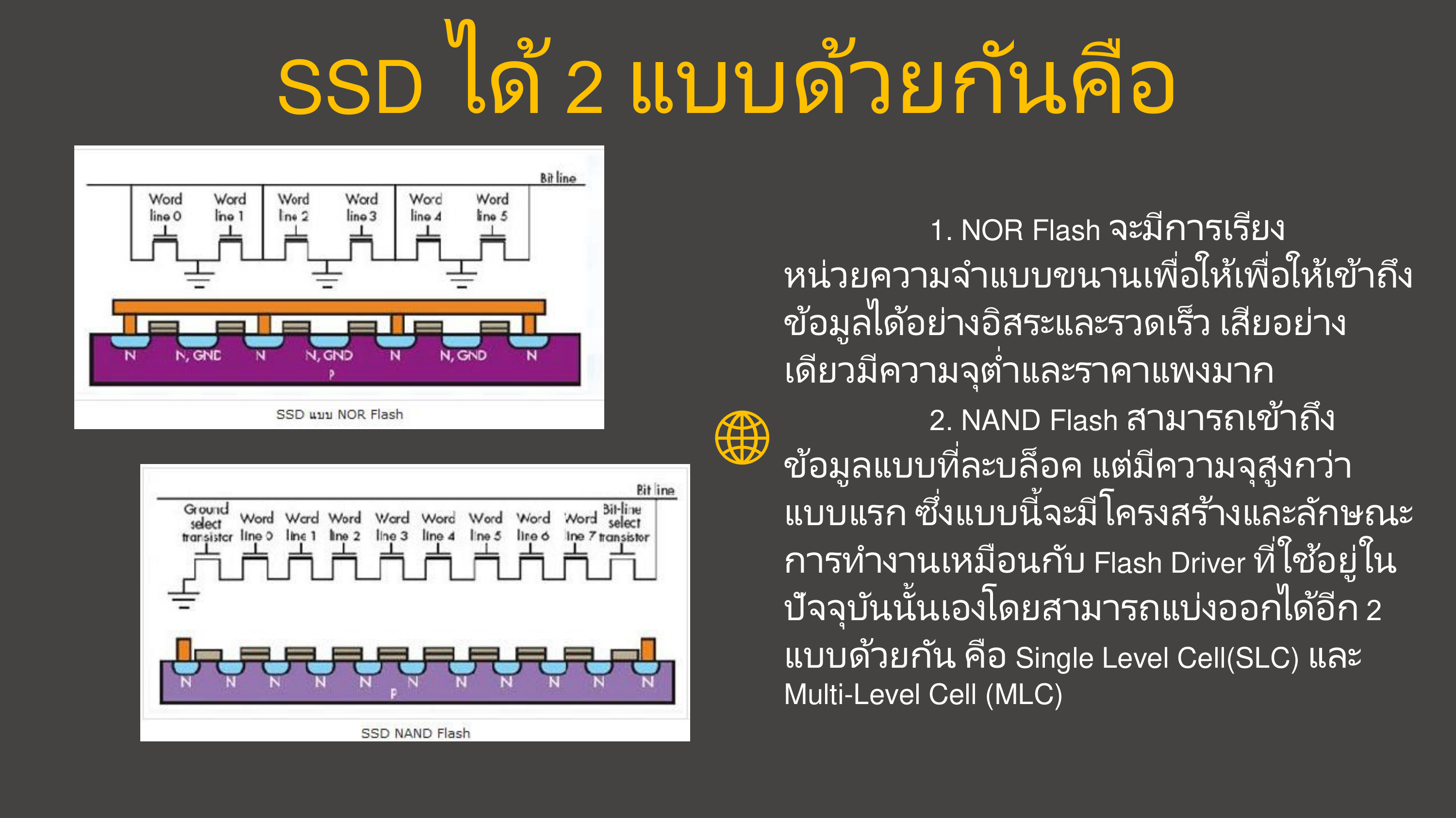 ในท้องตลาดผลิต SSD มา 2 แบบ แบ่งตามชิปหน่วยความจำได้แก่อะไรบ้าง
