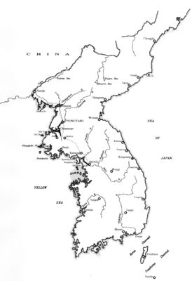 What body of water separates mainland China from North and South Korea?