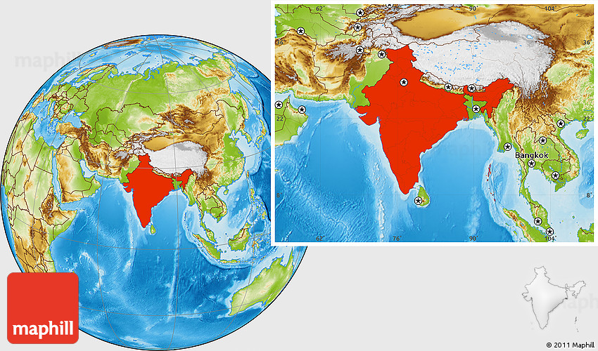 In the map above, what country is shown in red?