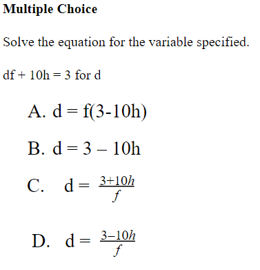 A1.ACE.4* Solve literal equations and formulas for a specified variable