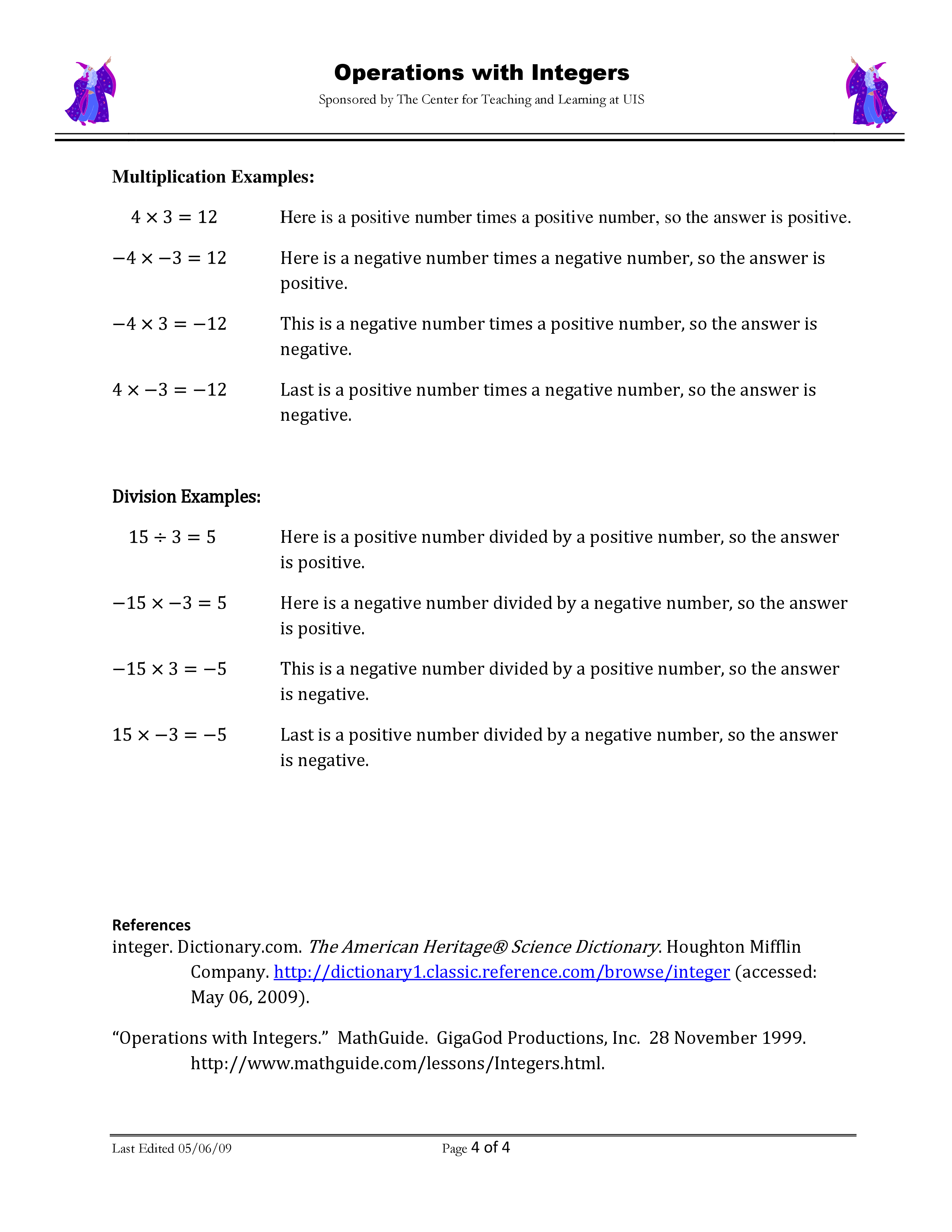When multiplying or dividing: If you have an even number of negative signs, the answer will always be positive.