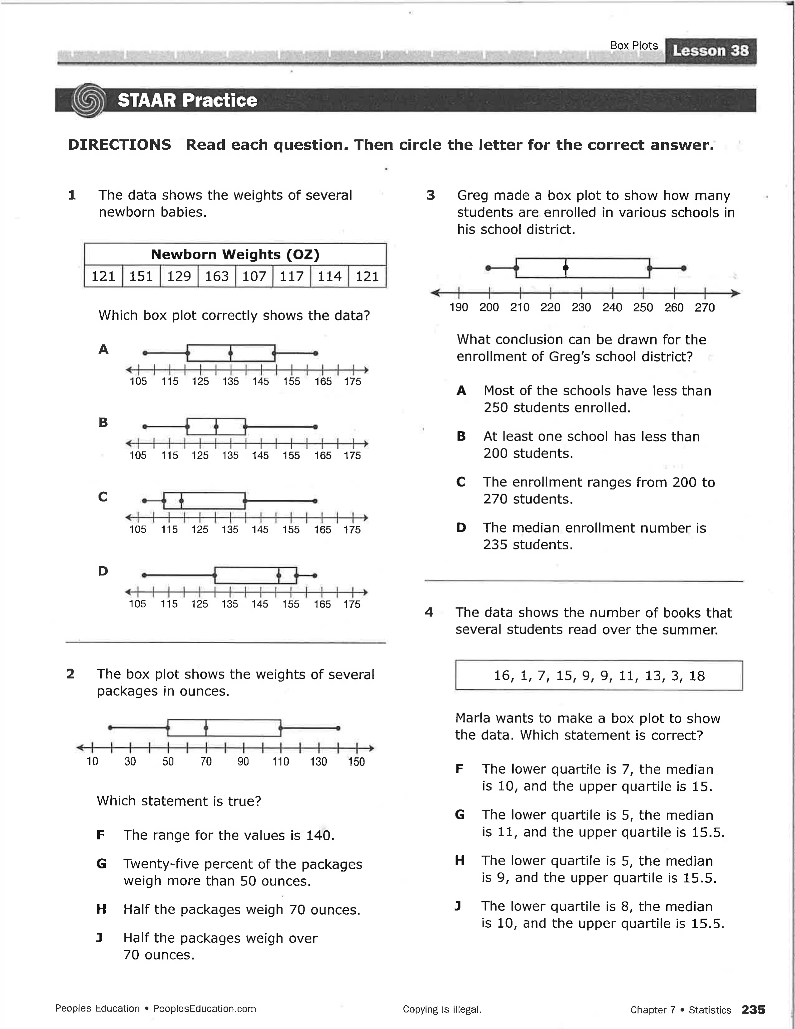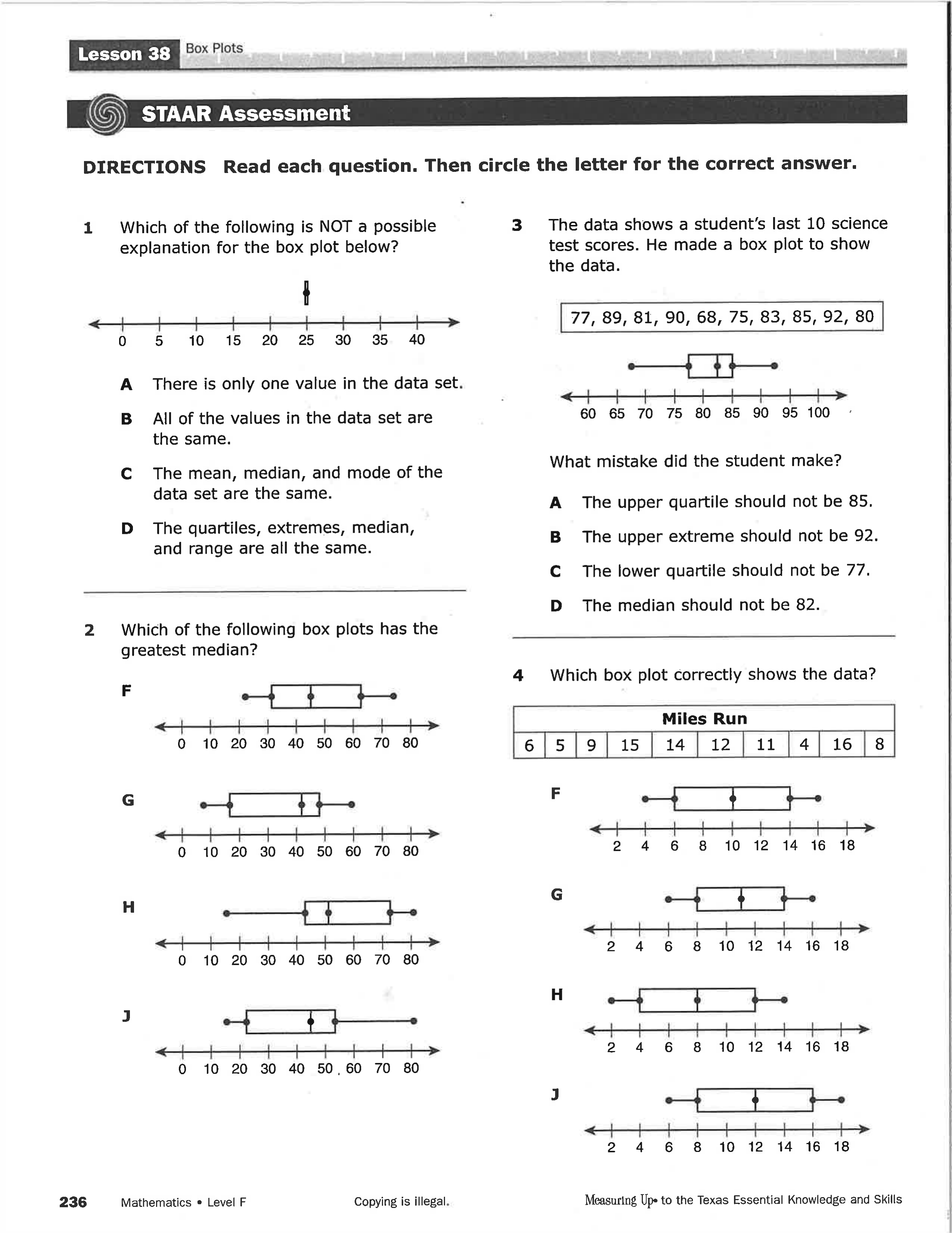 Dot Plots, Stem and Leaf Plots, and Box Plots