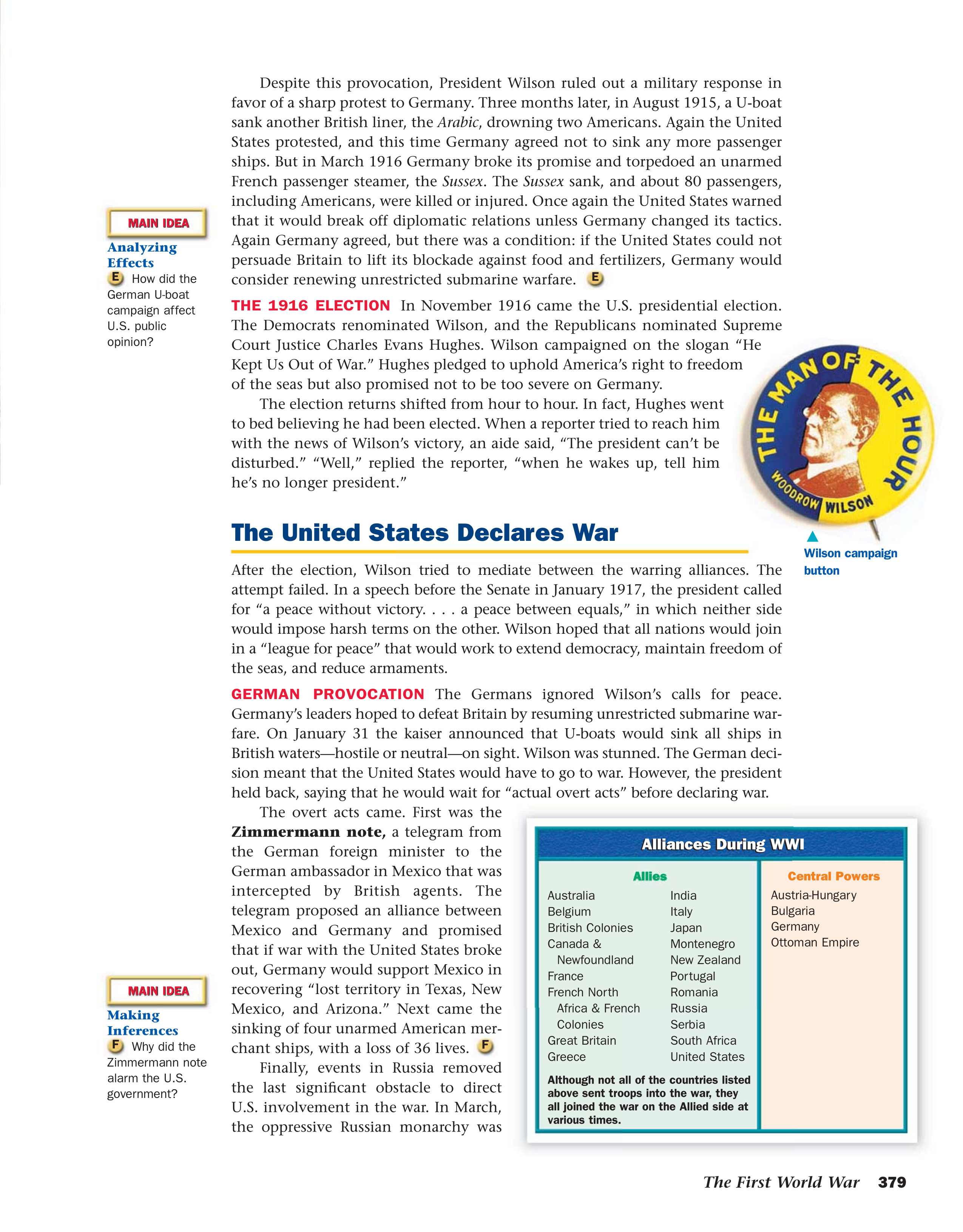 WWI - Events that draw America into War