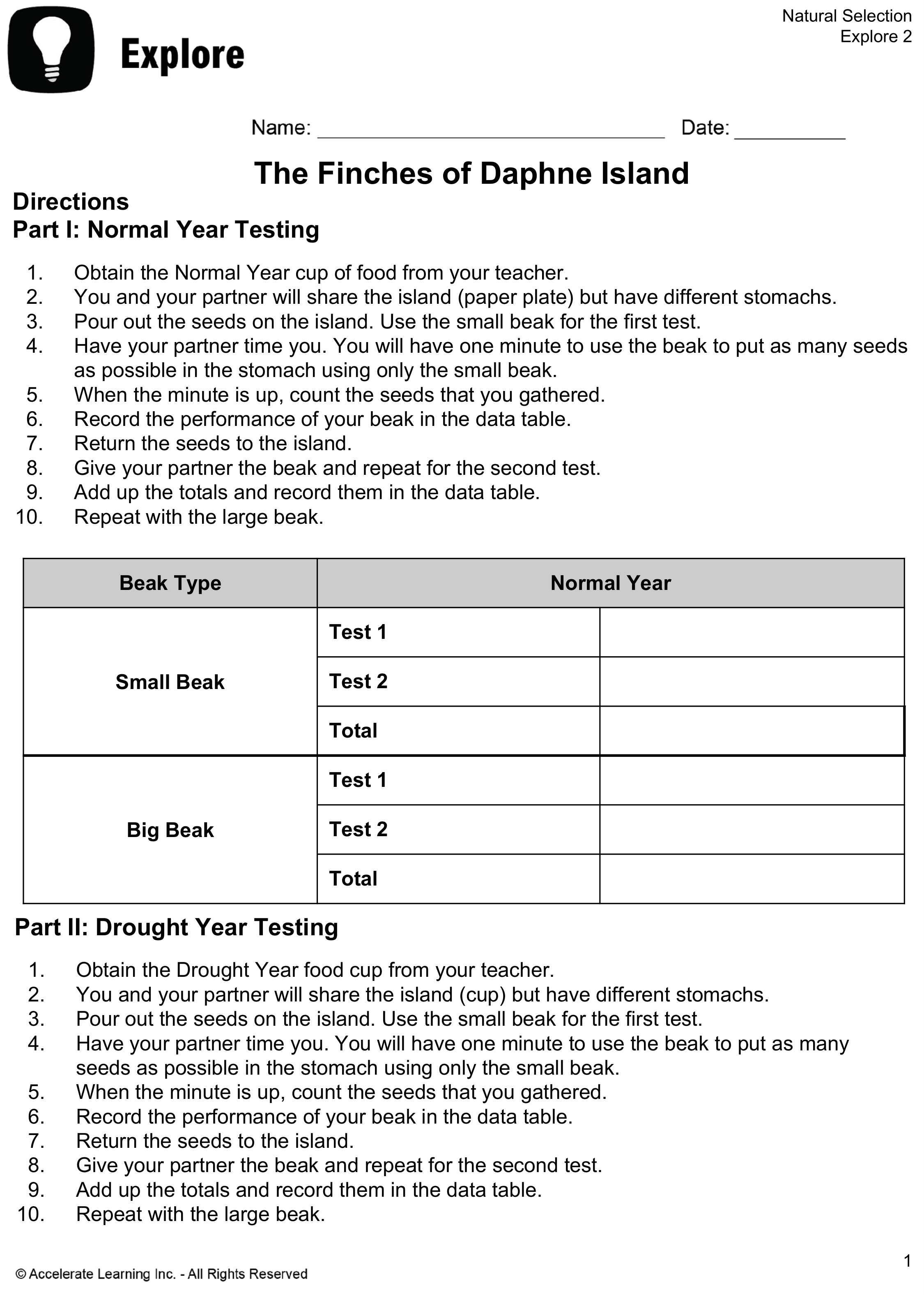 Drought Year: Enter the number of seeds collected for the small beak in test 1: