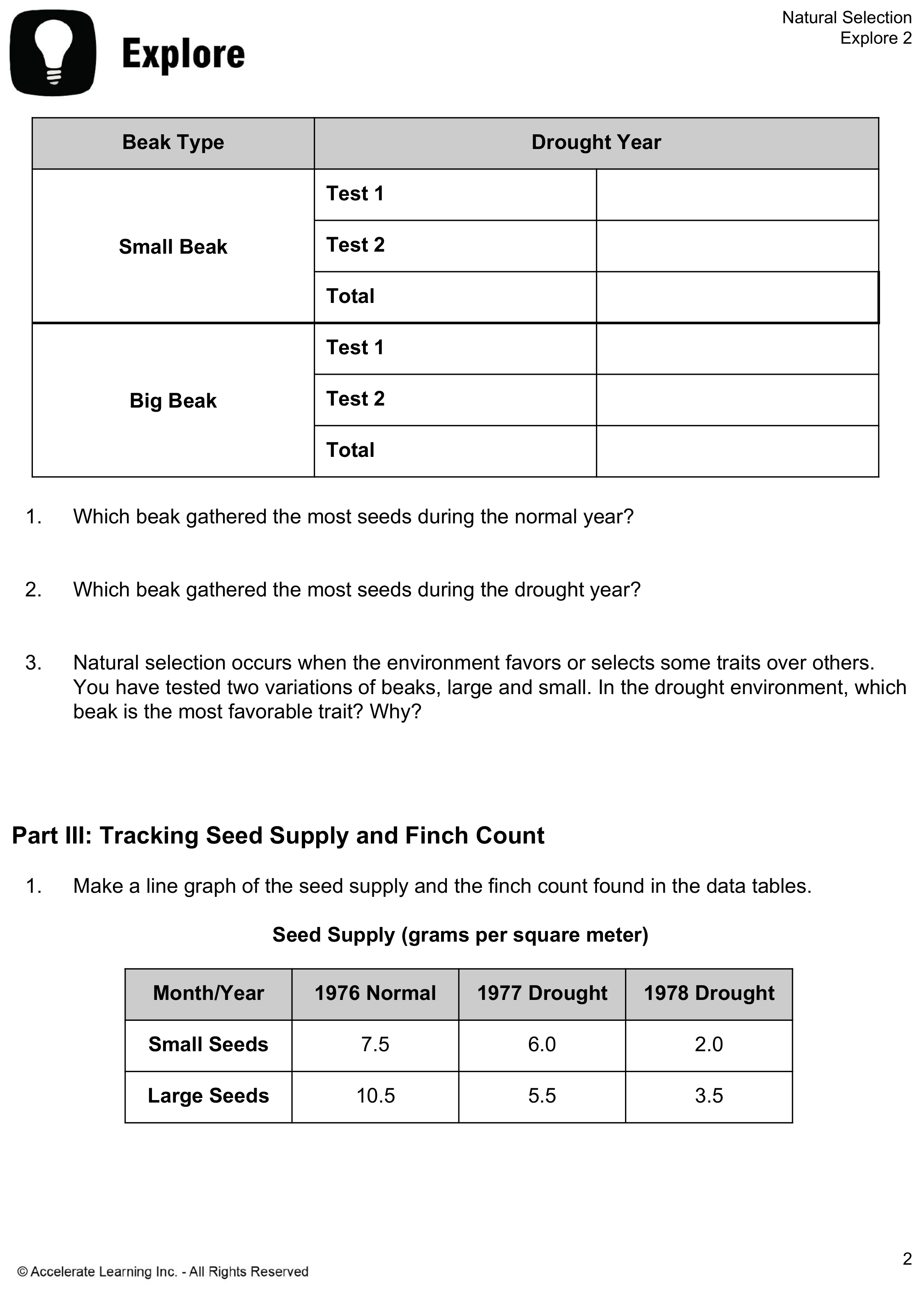 Drought Year: Enter the number of seeds collected for the small beak in test 2: