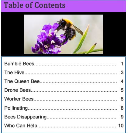 Look at the Table of Contents above. Which page should you turn to if you wanted to find out information about The Queen Bee?