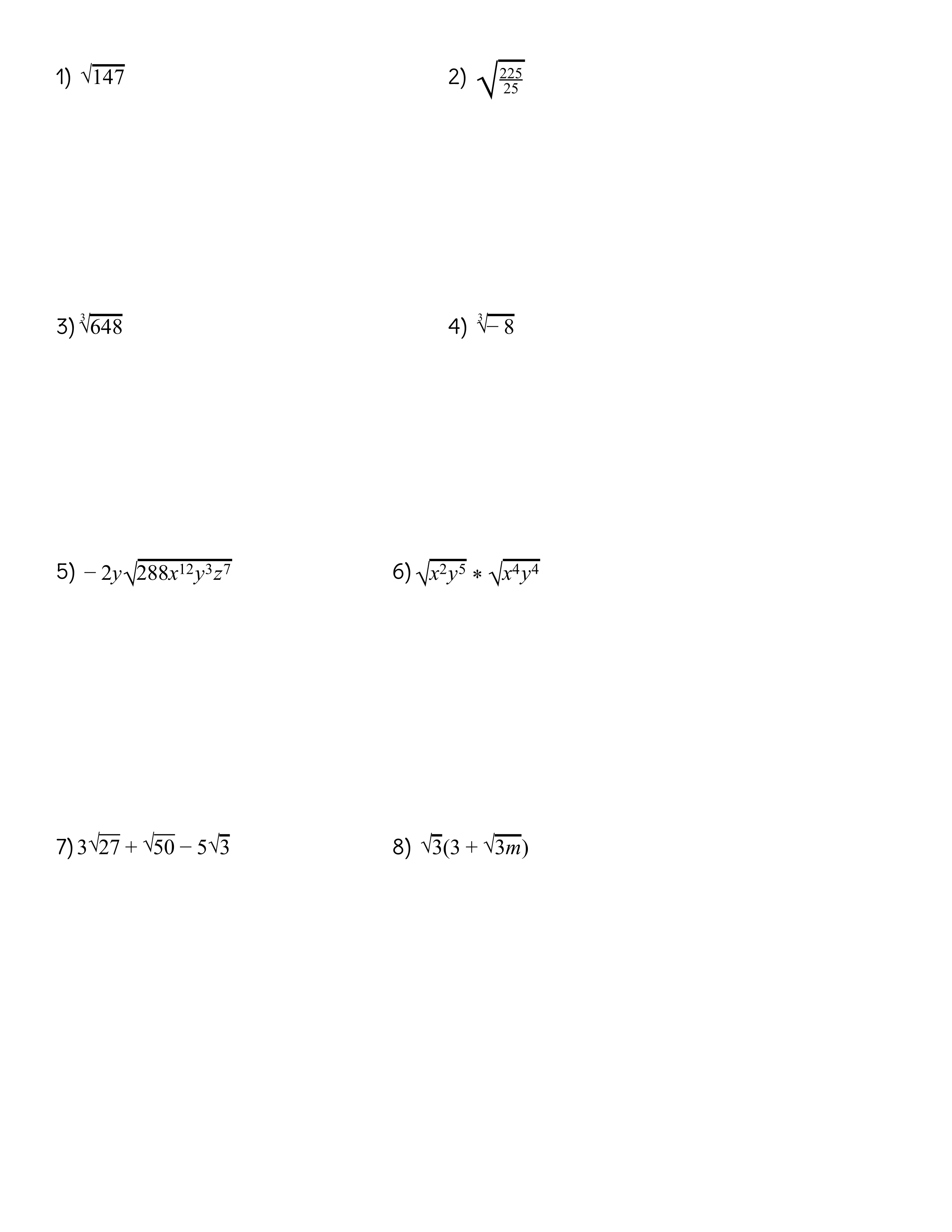SMS Alg Radicals Test - Study Guide