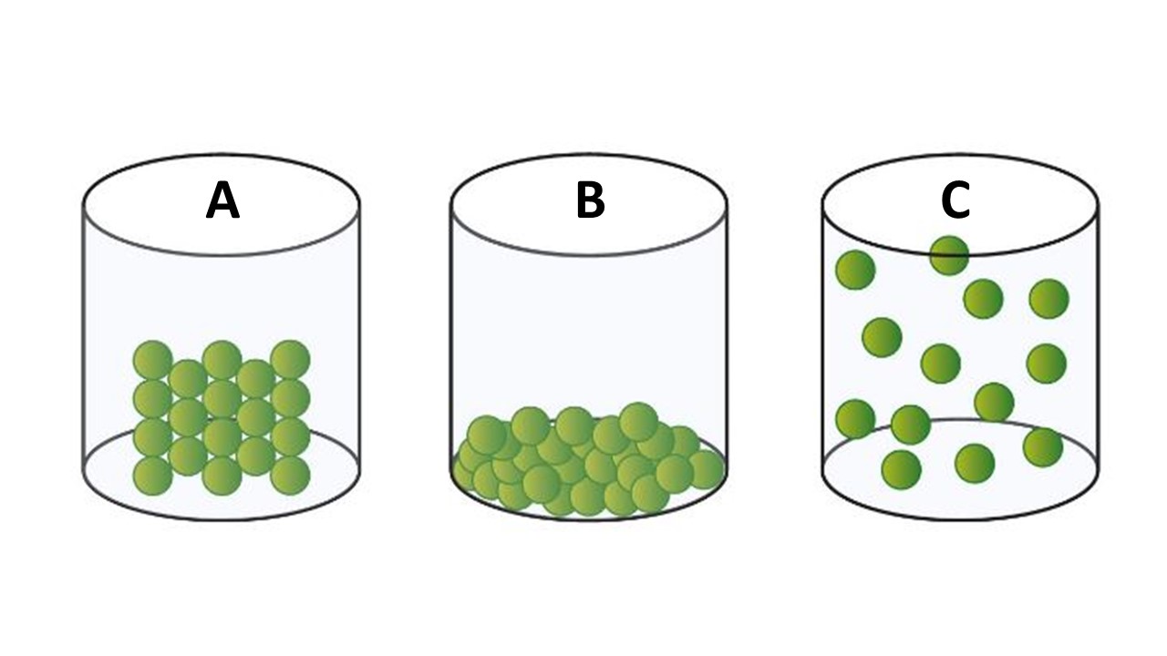 Liquids have no shape of their own. They take on the shape of the _______ that they are in.