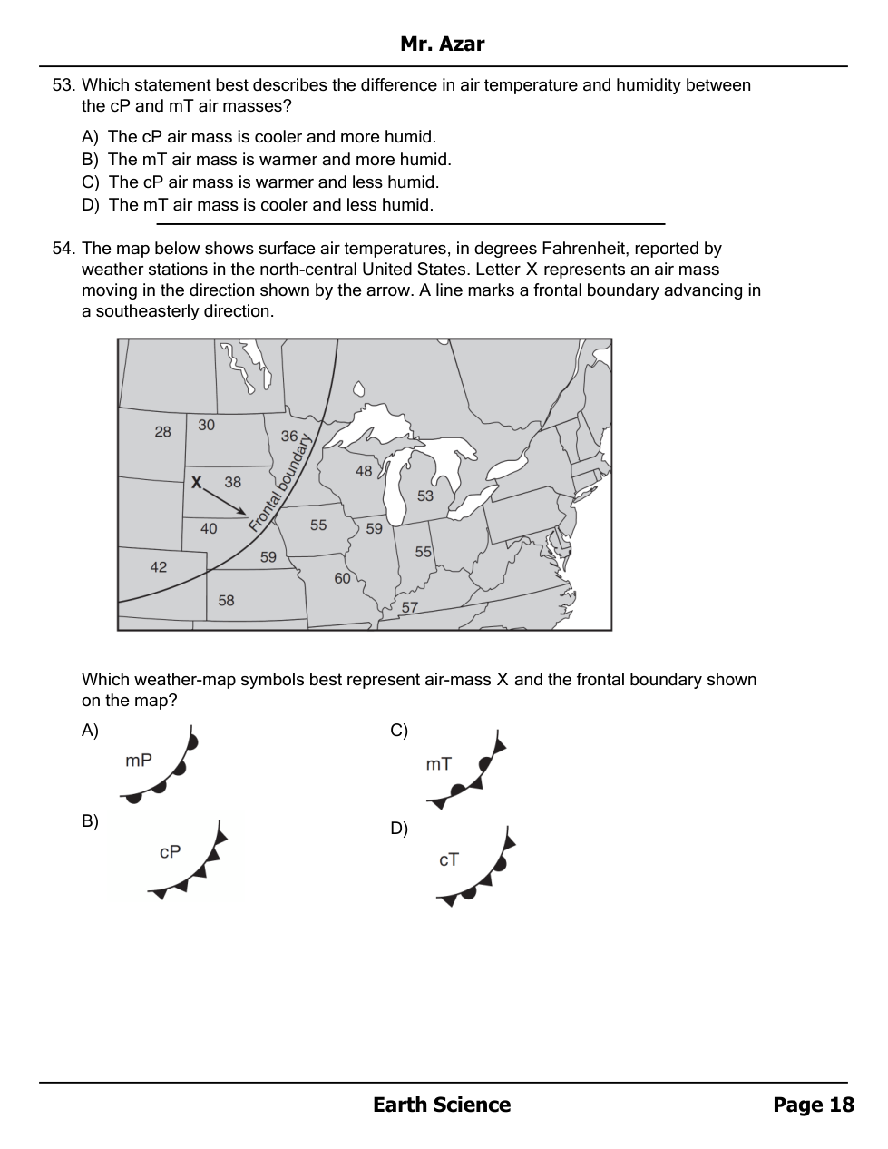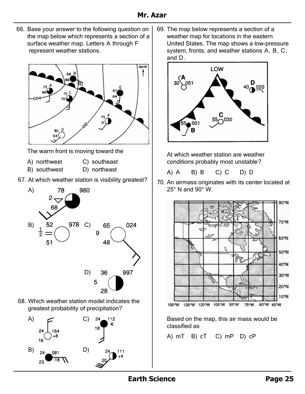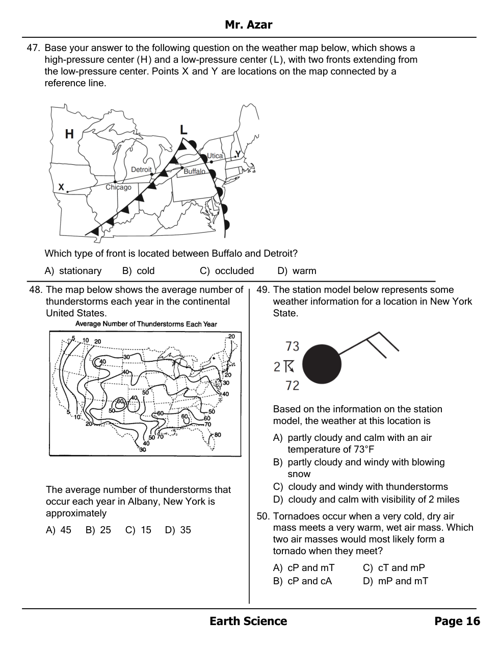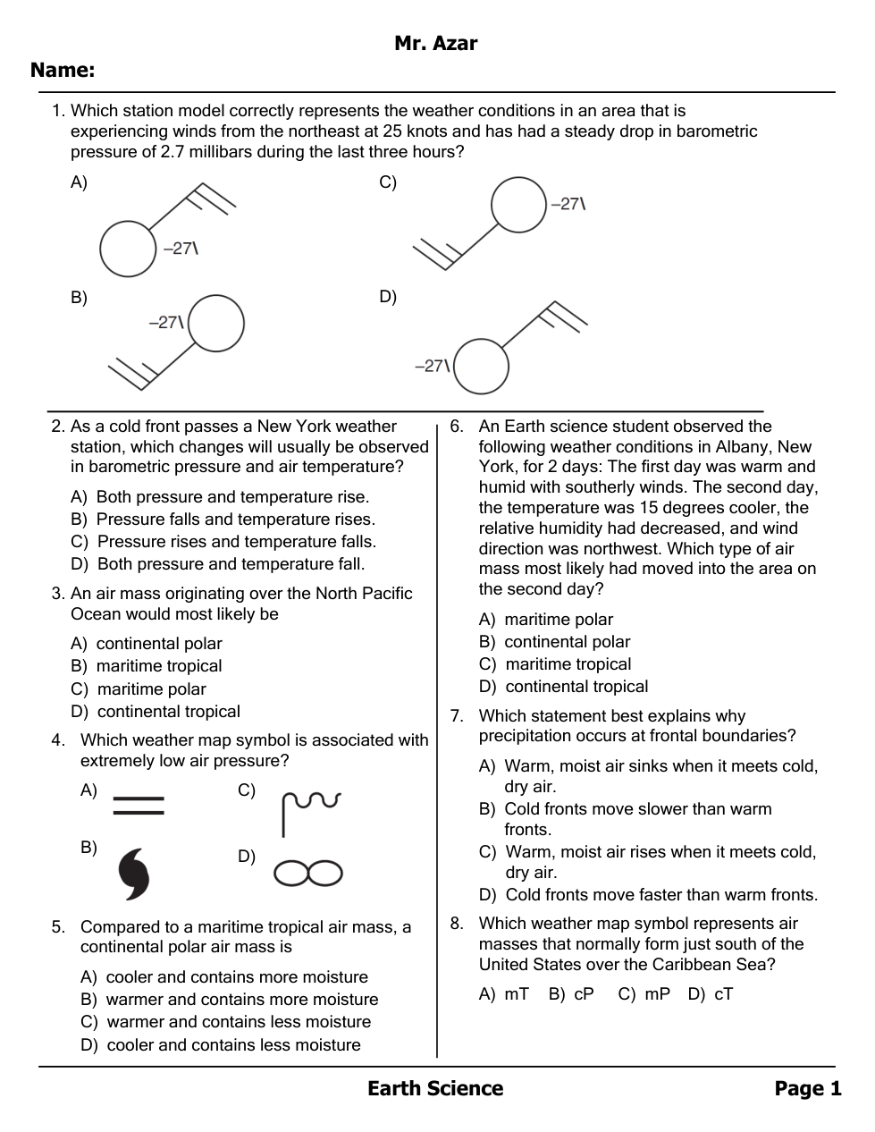 Air masses, Fronts and Station Models